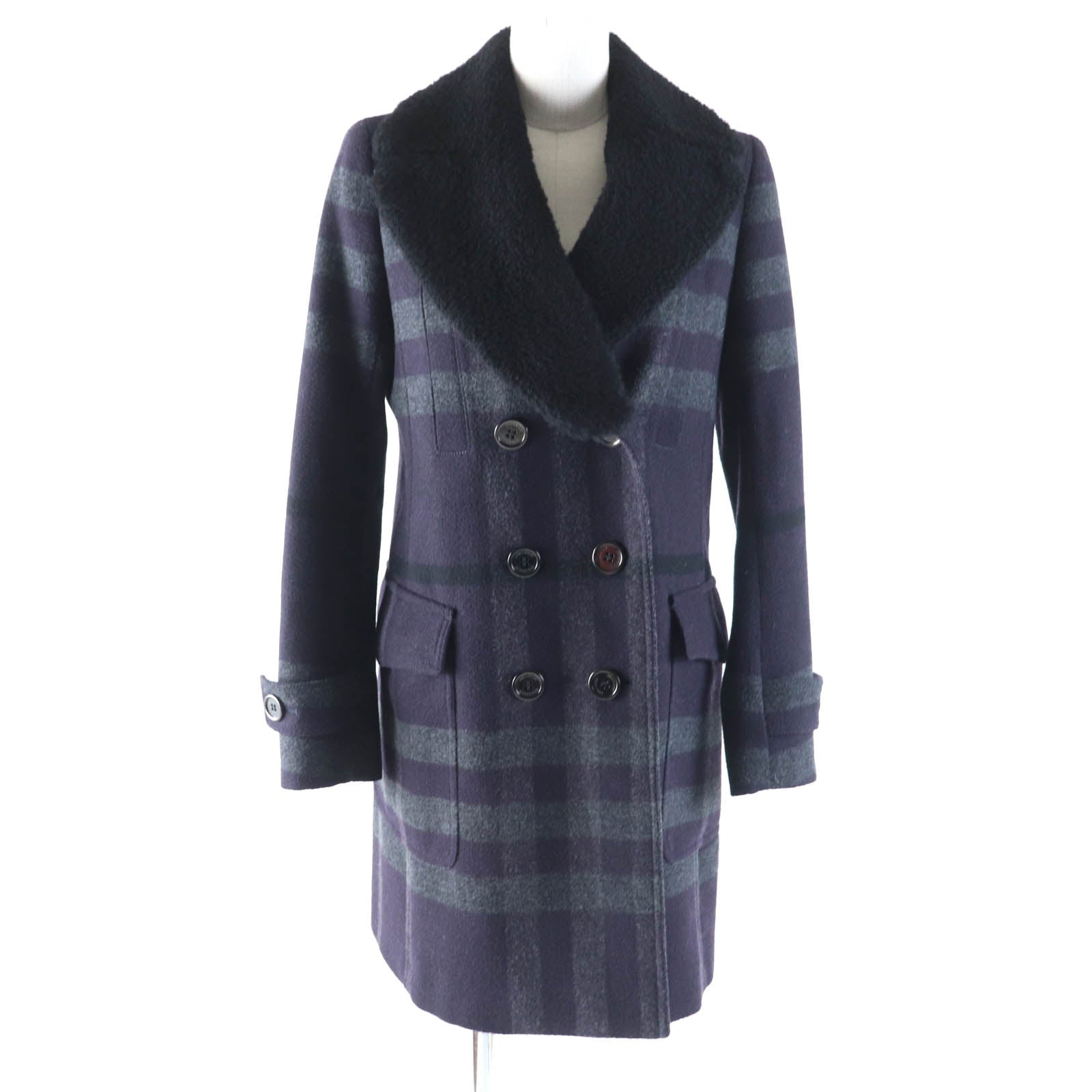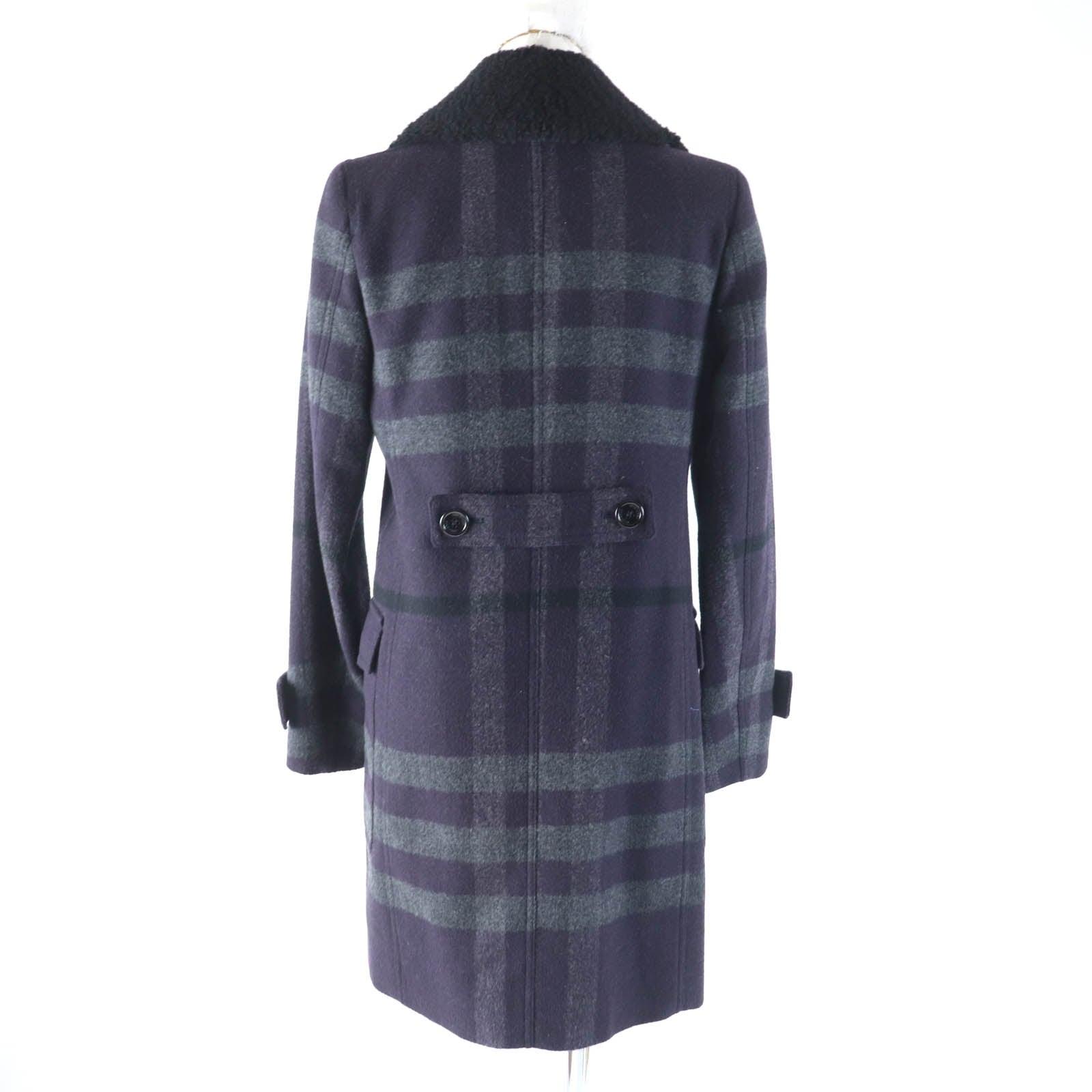 BURBERRY LONDON coat Outer: 84% wool, Outer: 16% polyester, Lining: Cupra, Fur: Mouton Purple gray Women 38 Used Authentic