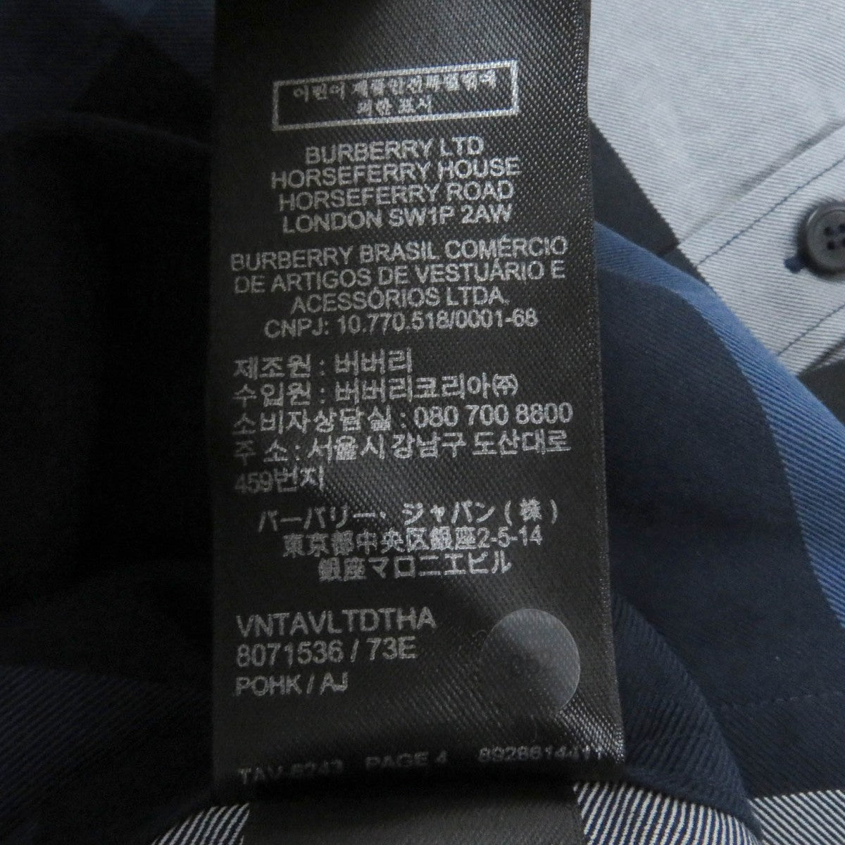 BURBERRY Long sleeve shirt 8071536 cotton Navy type S