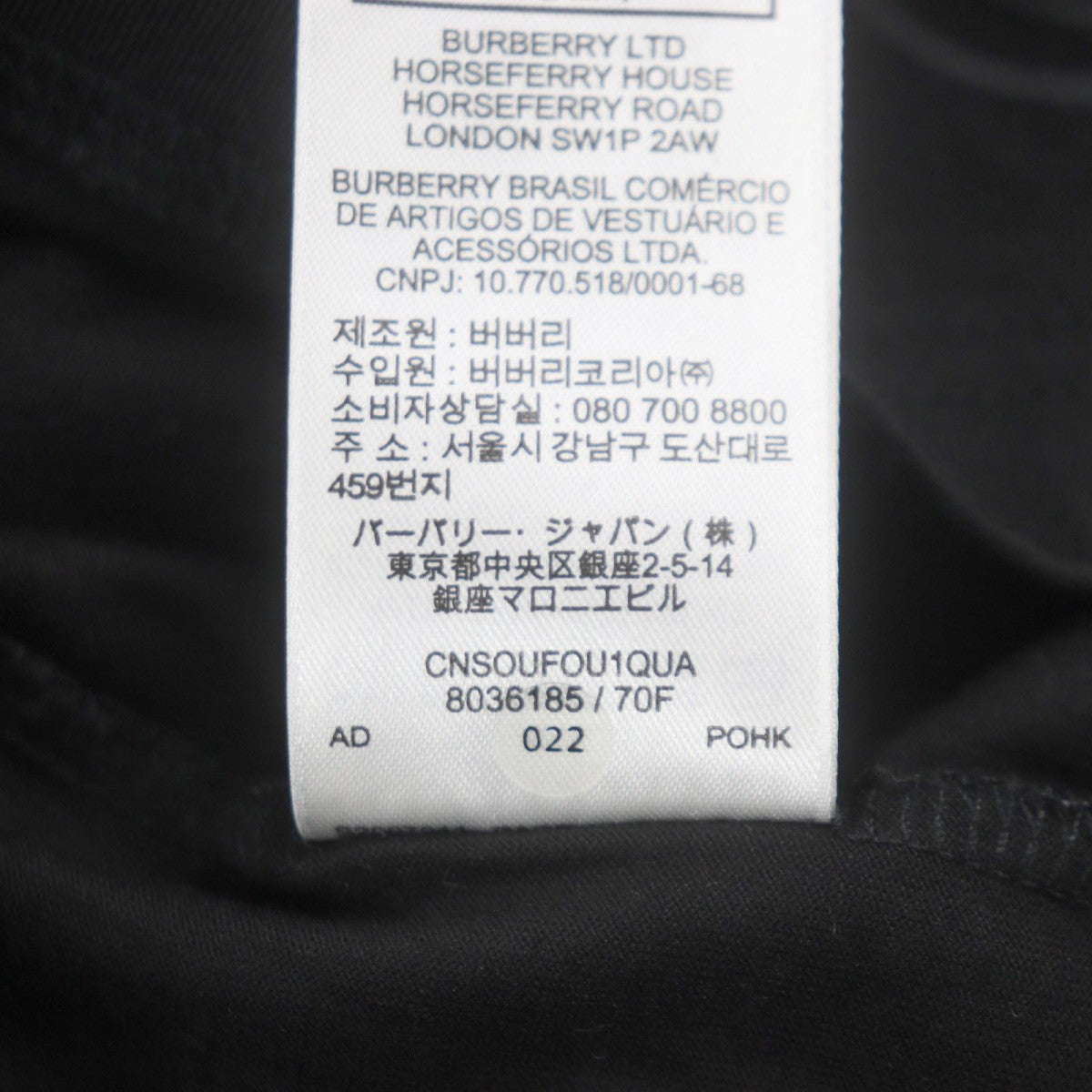 BURBERRY Short sleeve T-shirt 8036185 Main: 100% cotton, some parts: 97% cotton, some parts: 3% elastane black mens XS Used Authentic