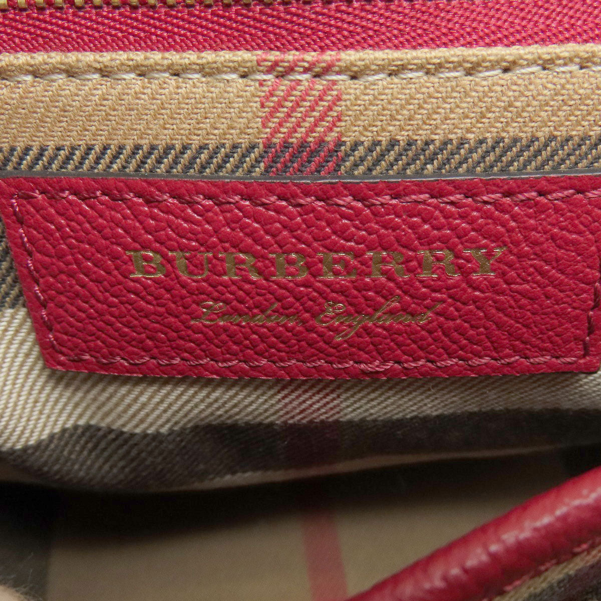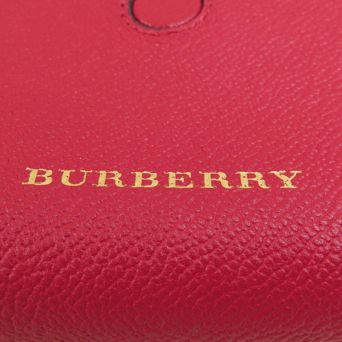 BURBERRY Tote Bag leather Red logo 2WAY Women Used Authentic