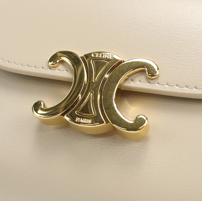CELINE 10D78 3DPV Tri-fold wallet Triomphe Small flap wallet leather beige Women