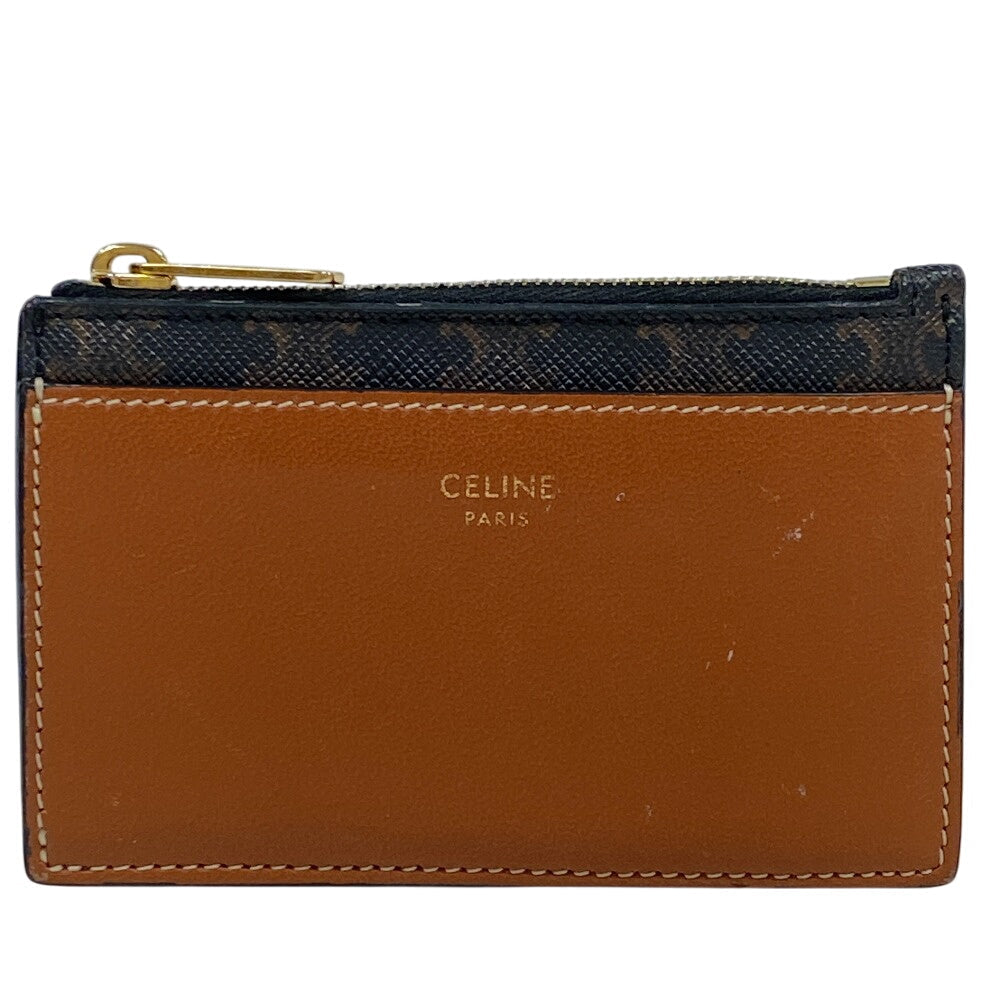 CELINE Coin case leather Brown Fragment case Card Case Macadam Women Used Authentic