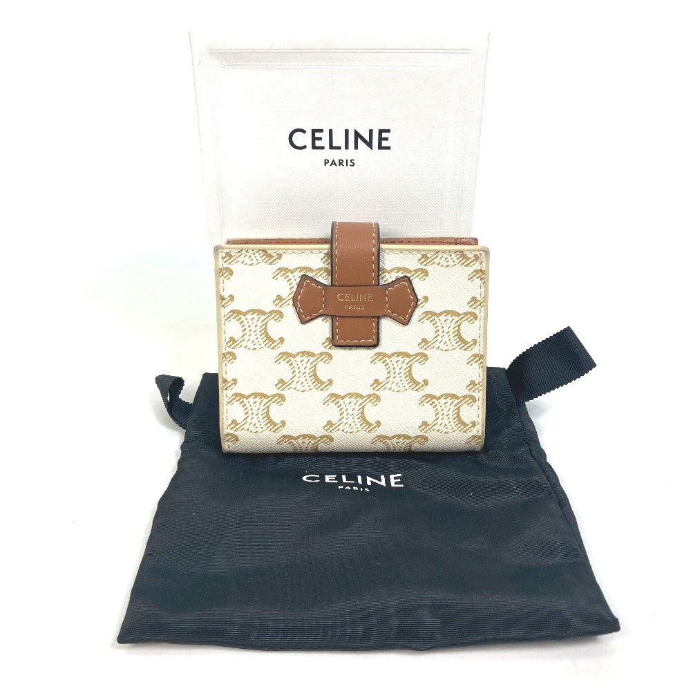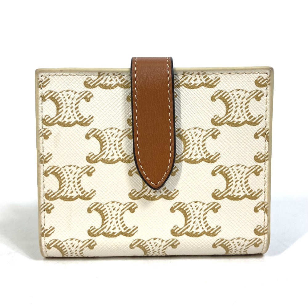 CELINE Folded wallet PVC / Leather White / brown Macadam Triomphe Wallet Women Used Authentic