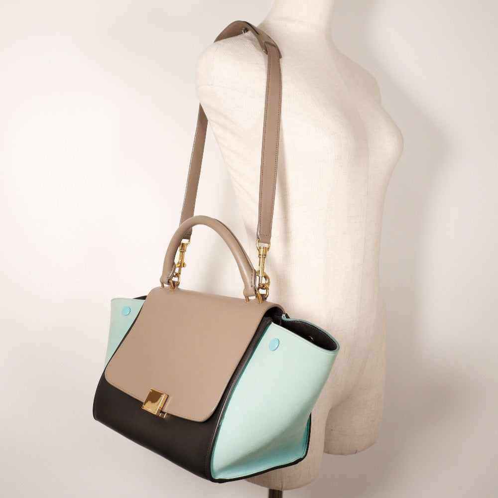 CELINE Handbag Calfskin Brown / black 2WAYShoulder Trapeze Women Used Authentic