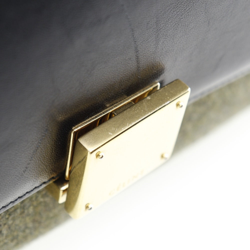 CELINE Handbag Felt, Calfskin Black / grey Trapeze Women Used Authentic