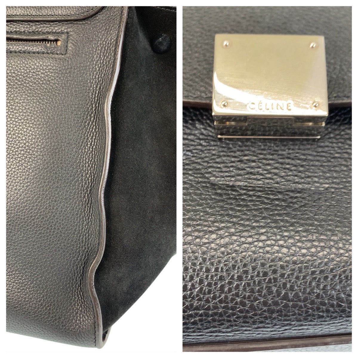 CELINE Handbag Leather, Suede Black black Handbag Trapeze Women Used Authentic