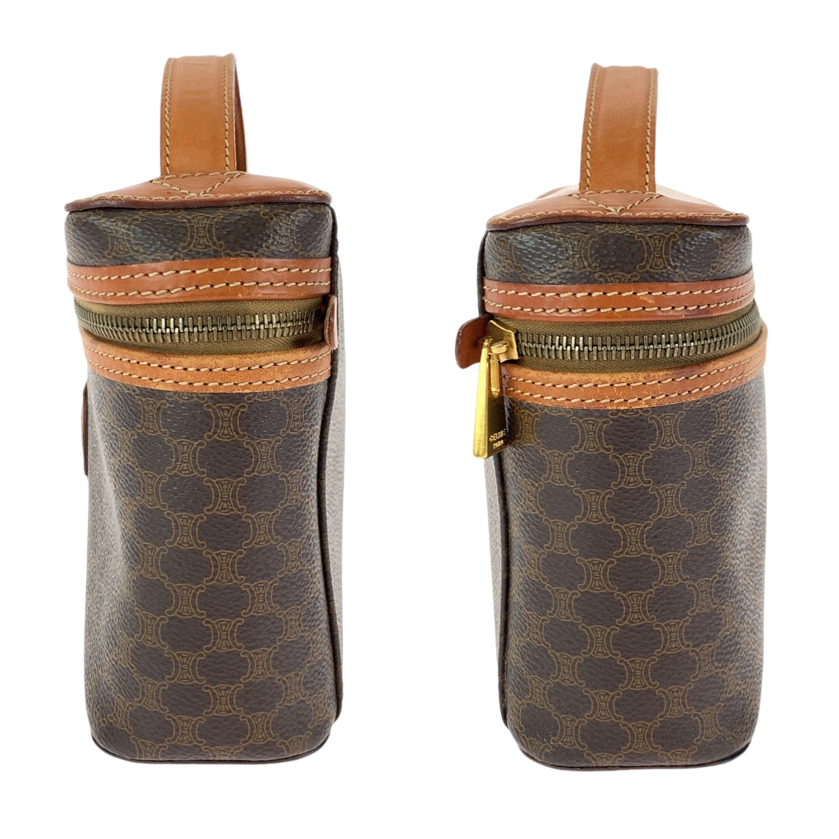 CELINE Handbag M95 PVC Brown Gold Metal Handbag vanity bag Macadam Pattern Women Used Authentic