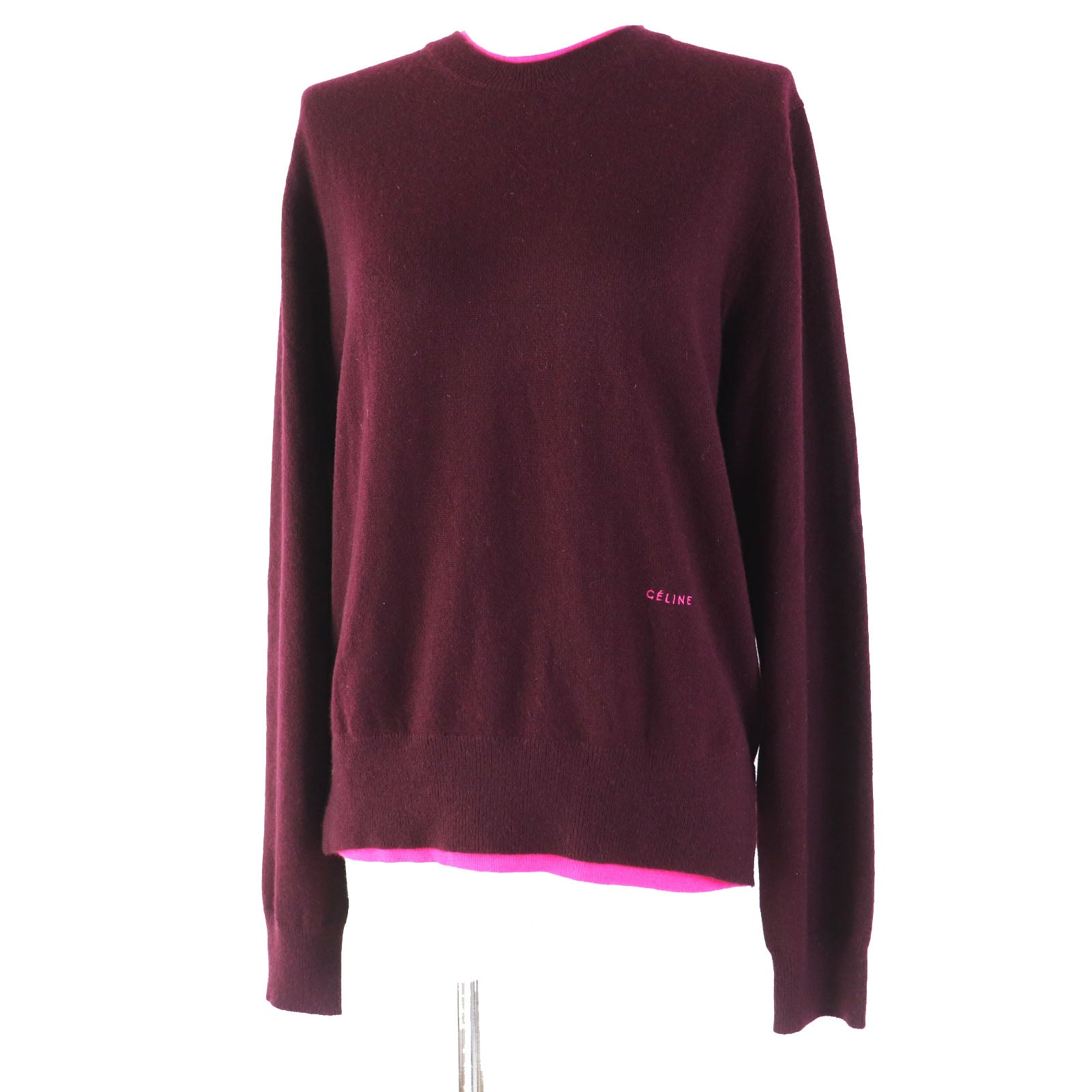CELINE knit Main: 63% cashmere, Main: 37% wool Bordeaux Pink Phoebe Philo Women M Used Authentic