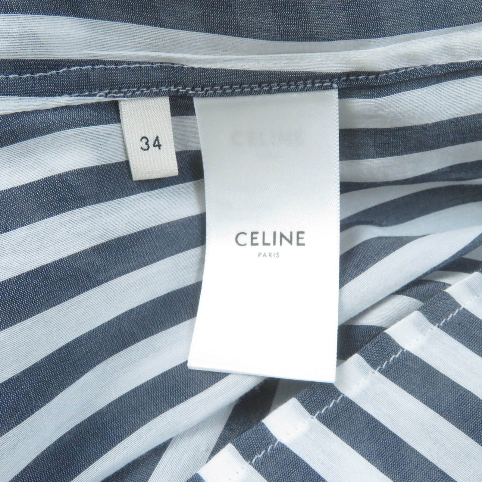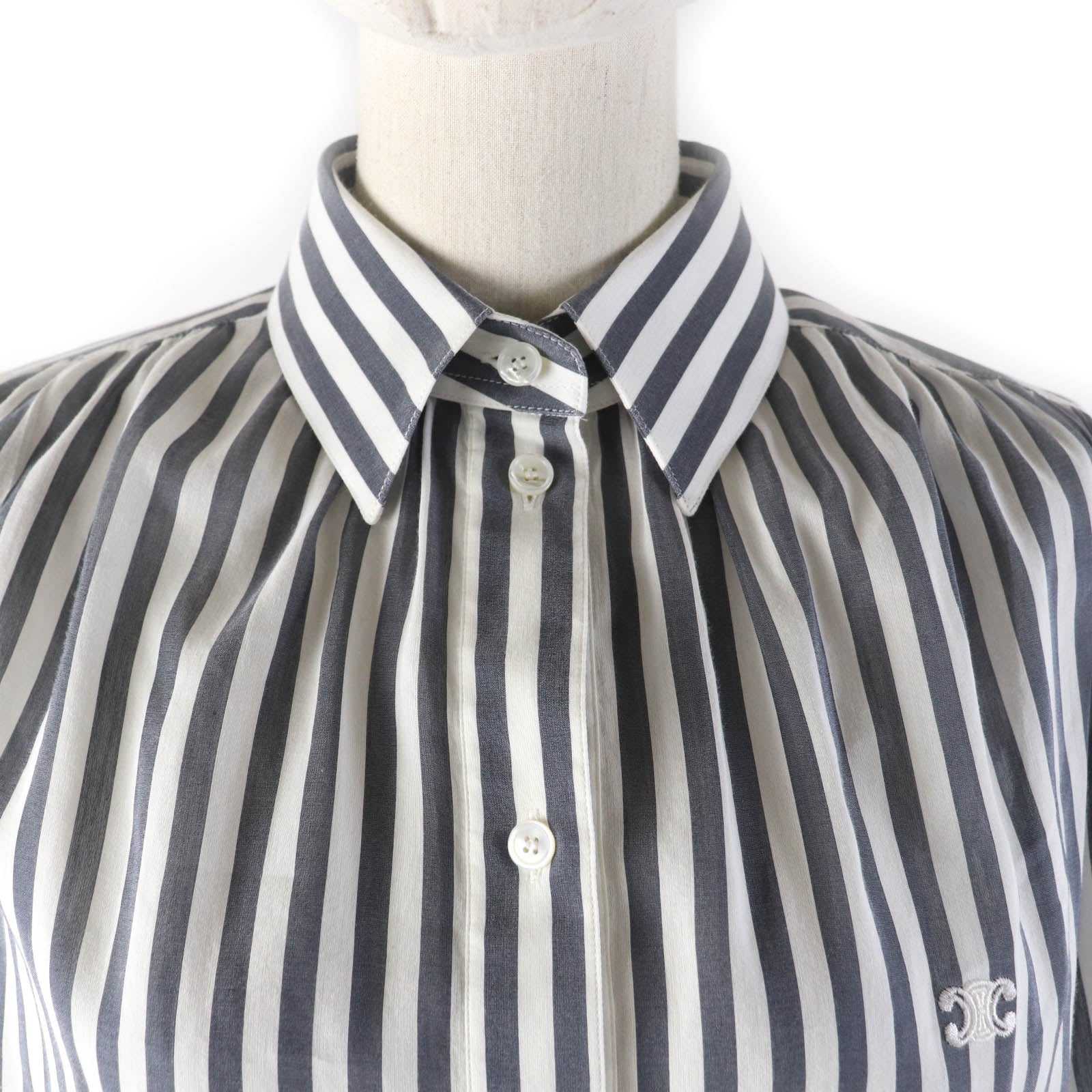 CELINE Long sleeve shirt 2C703637P Main: 73% cotton, Main: 27% silk Gray white Women 34 Used Authentic