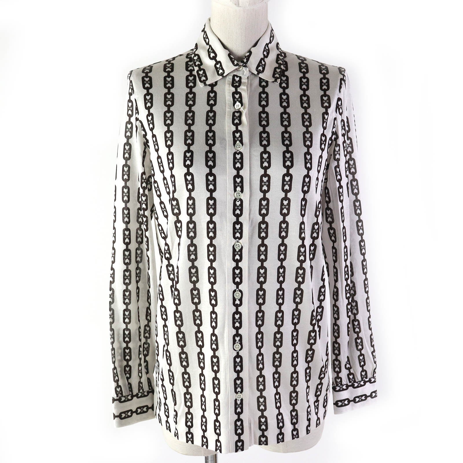 CELINE Long sleeve shirt Main: 100% cotton Off White Dark Brown Women 40 Used Authentic