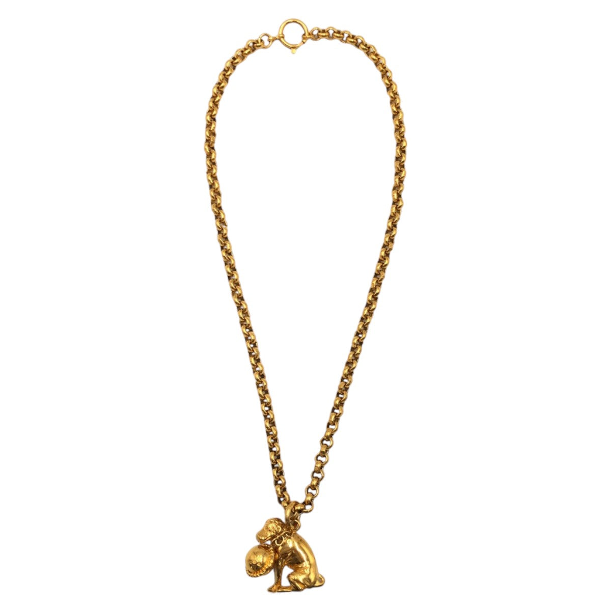 CELINE Necklace plating gold Necklace Dog motif Women Used Authentic