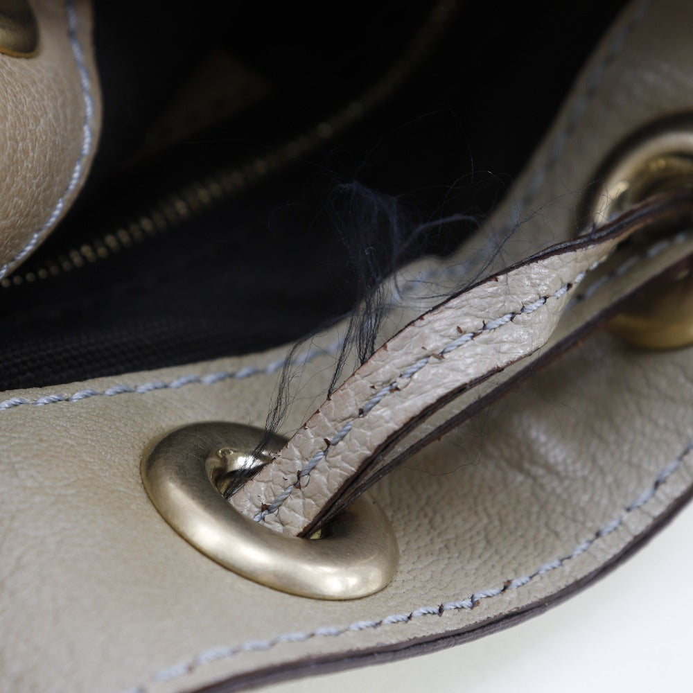 CELINE Shoulder Bag Calfskin beige punching purse Women Used Authentic