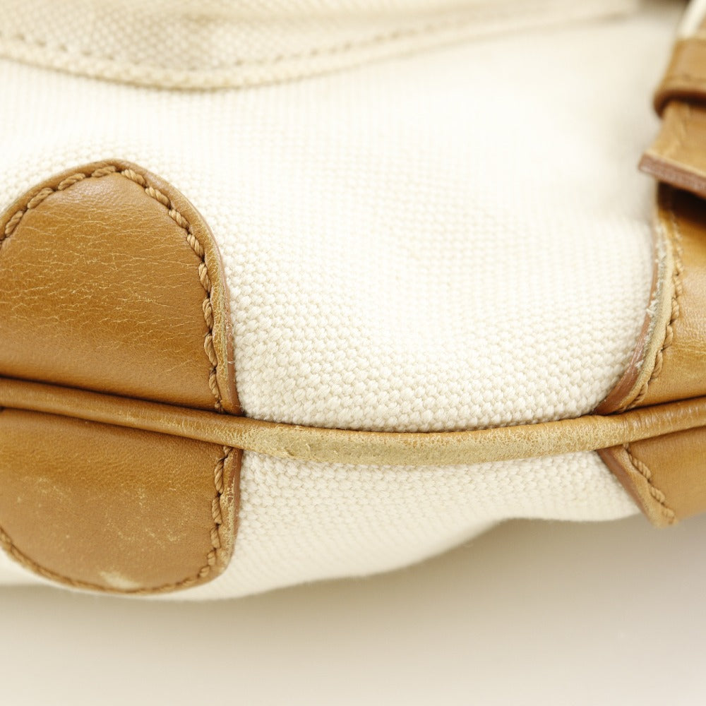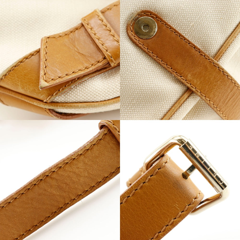 CELINE Shoulder Bag canvas beige Carriage Metal Women Used Authentic
