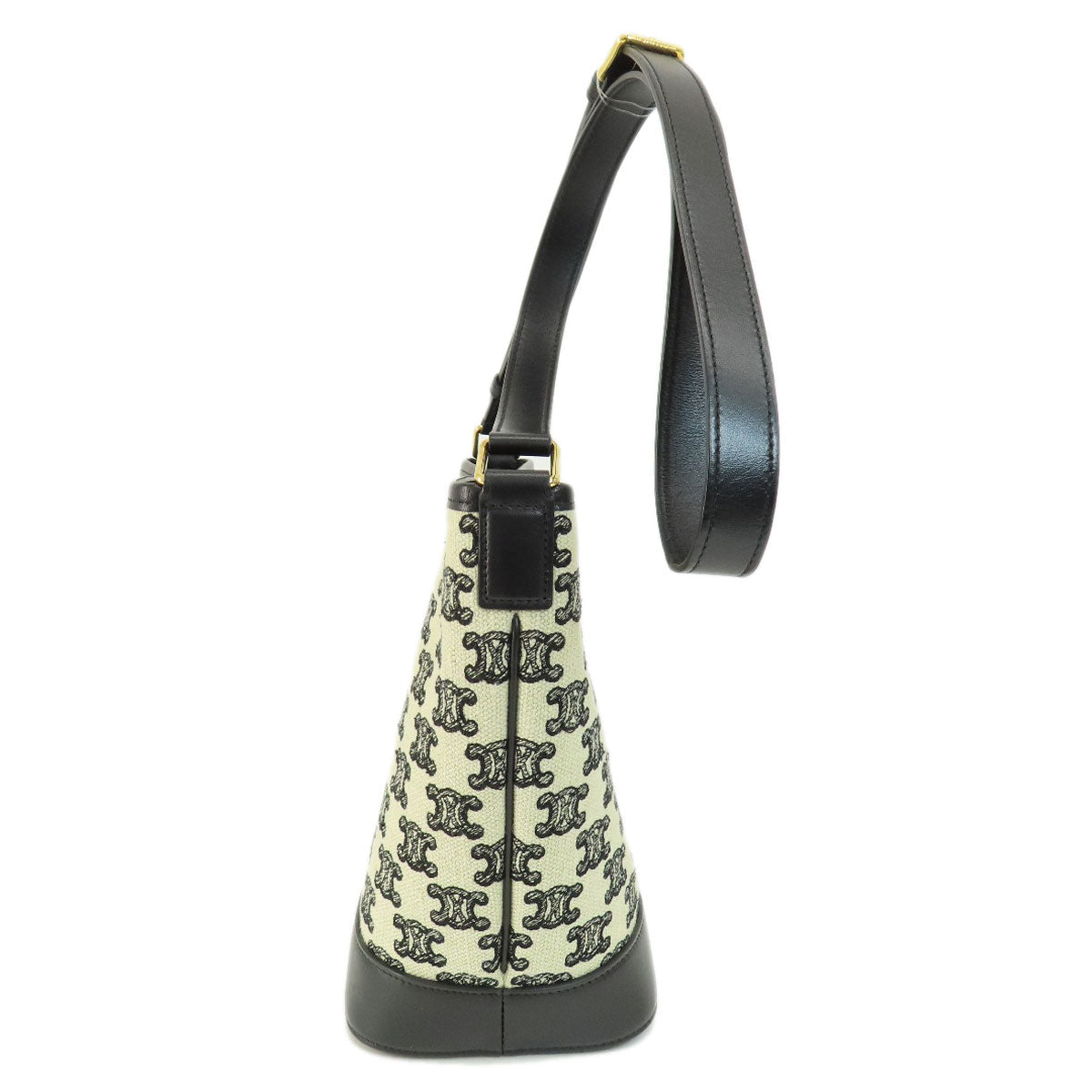 CELINE Shoulder Bag canvas black Small Bucket Triomphe Women Used Authentic