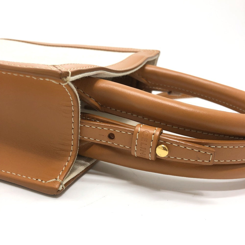 CELINE Shoulder Bag Canvas / leather beige logo Vertical hippo mini Women Used Authentic