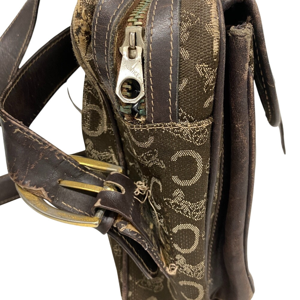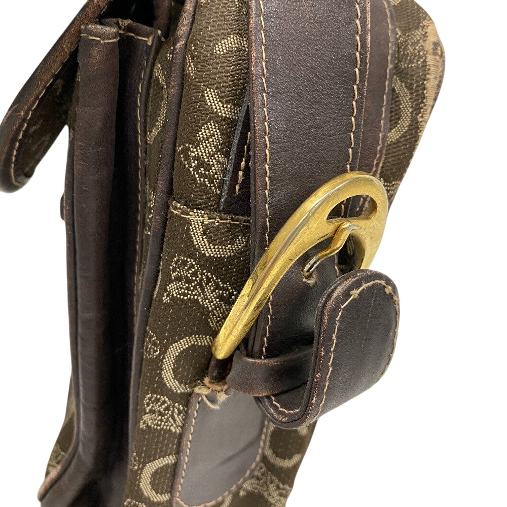CELINE Shoulder Bag Canvas, Leather Brown Sulky C Carriage Pattern Women Used Authentic