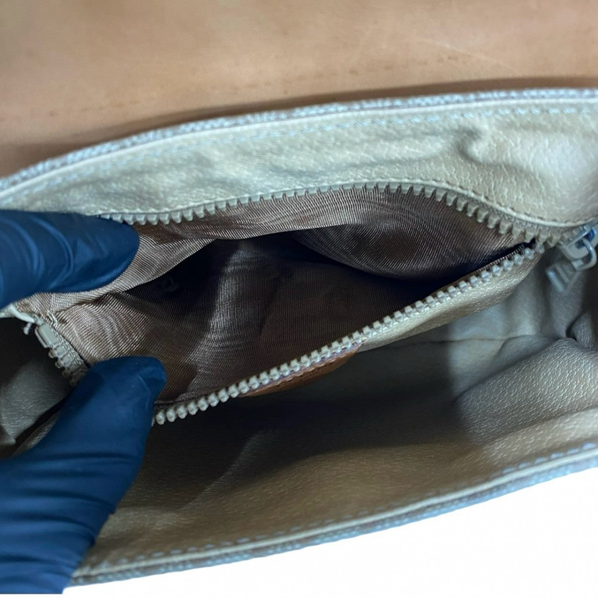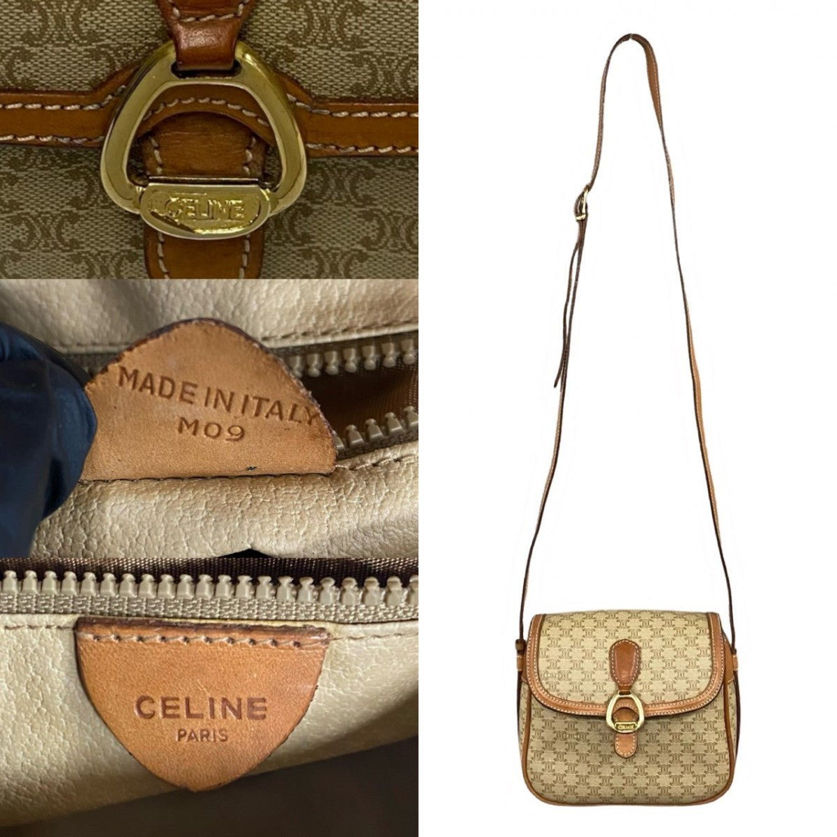 CELINE Shoulder Bag leather beige