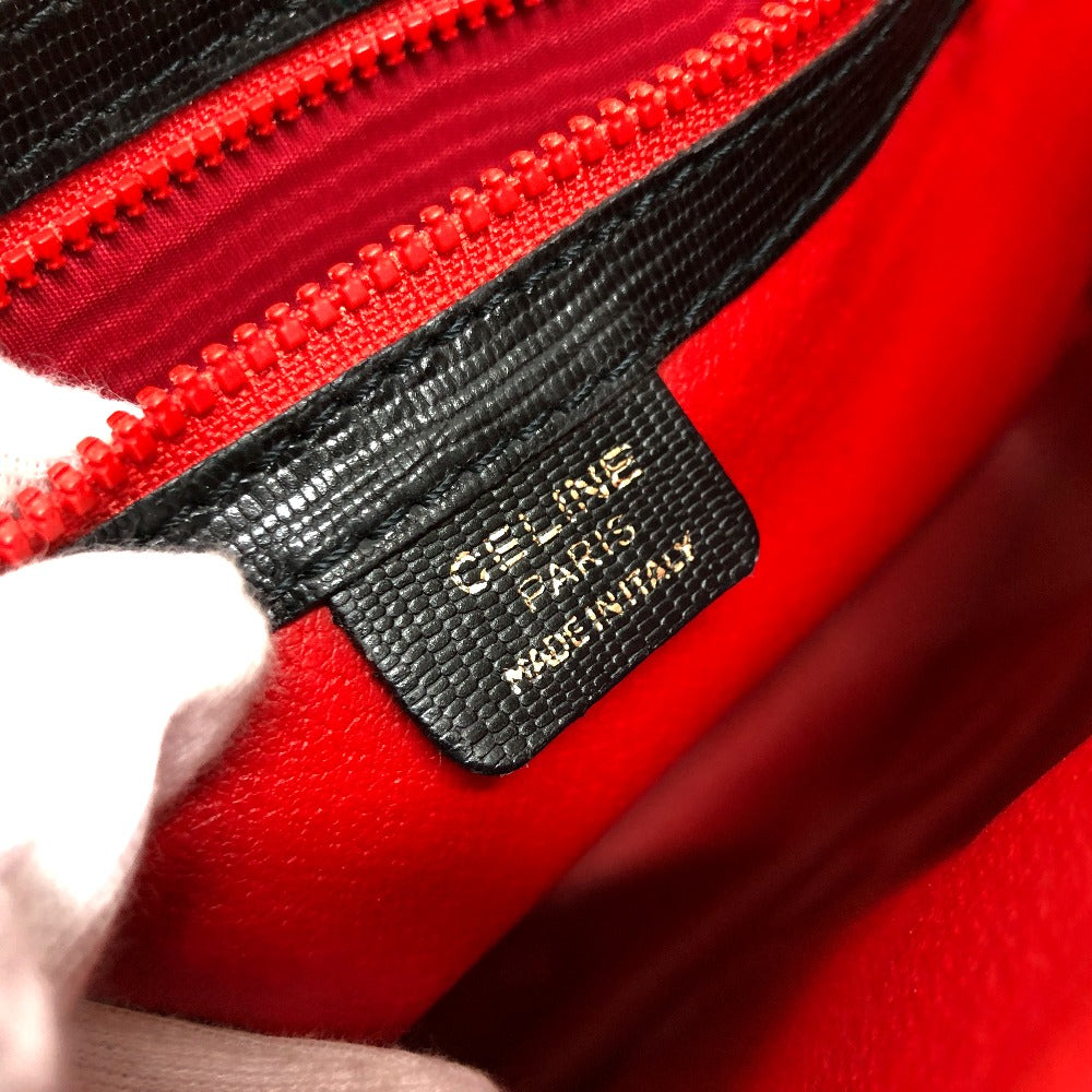 CELINE Shoulder Bag leather black Circle charm Women Used Authentic