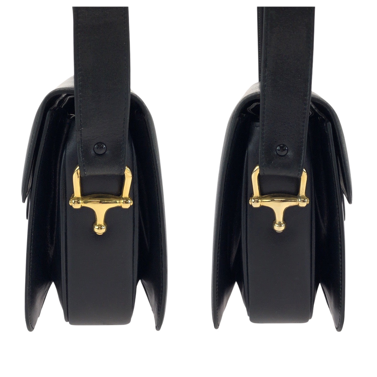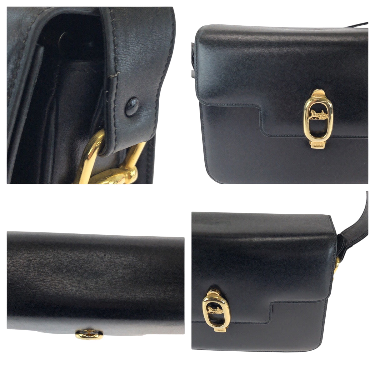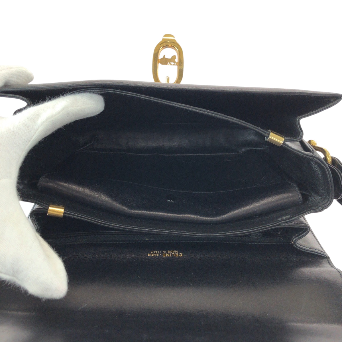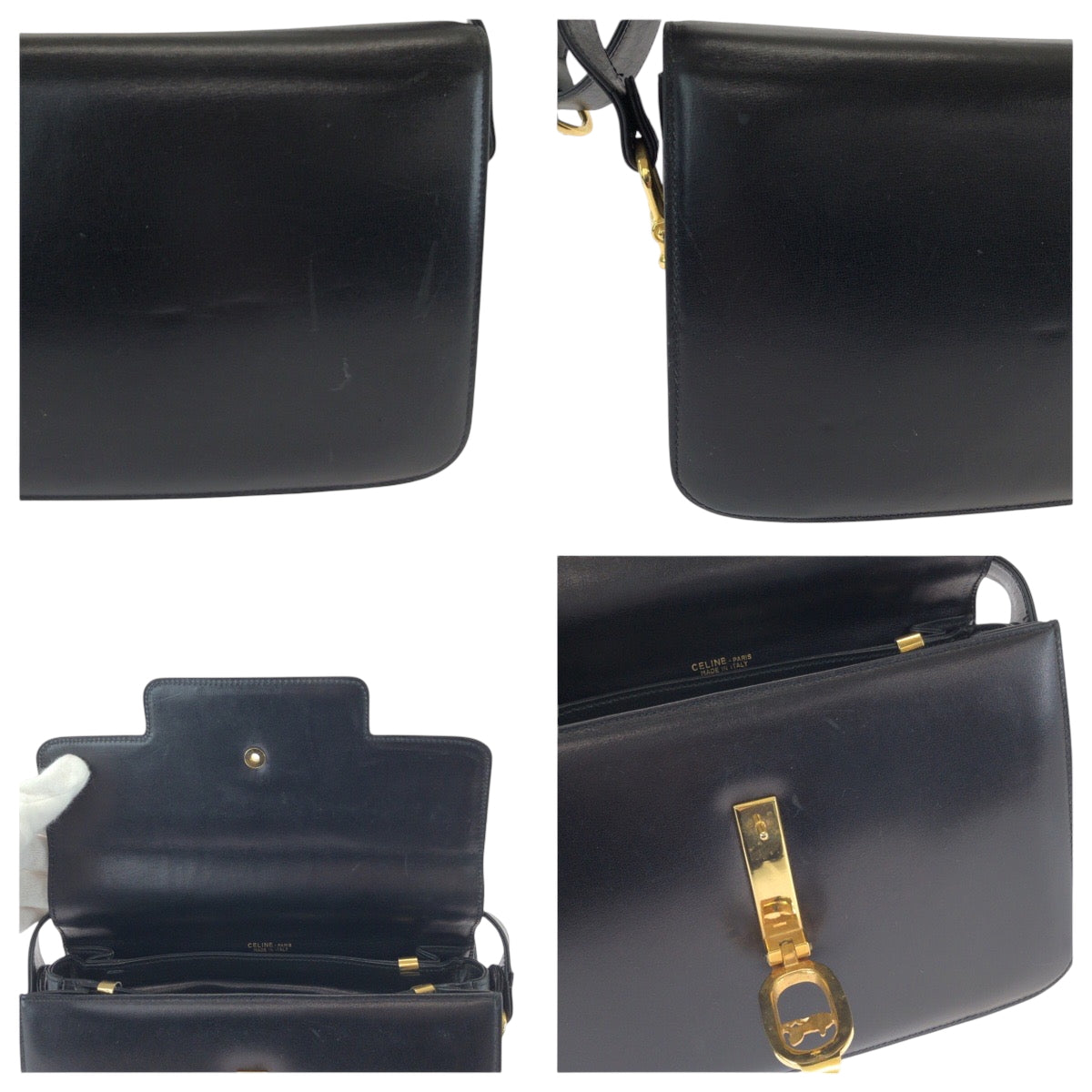 CELINE Shoulder Bag leather Black Gold Metal Shoulder Bag Shoulder Bag Carriage Metal Women Used Authentic