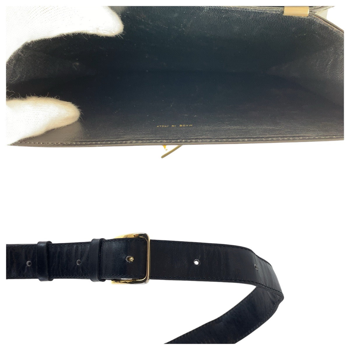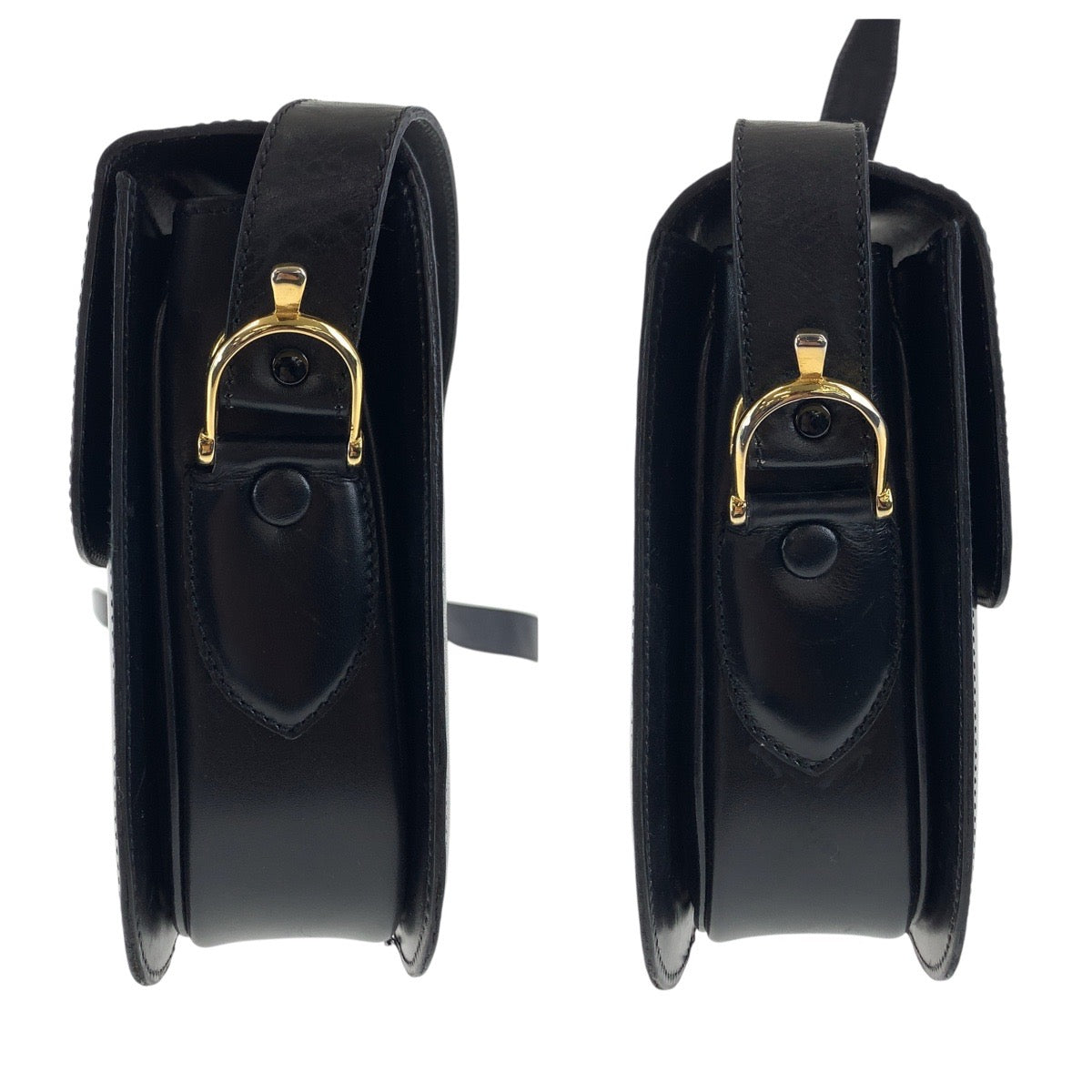 CELINE Shoulder Bag leather Black GoldMetal Shoulder Bag pochette Horse Carriage Women Used Authentic
