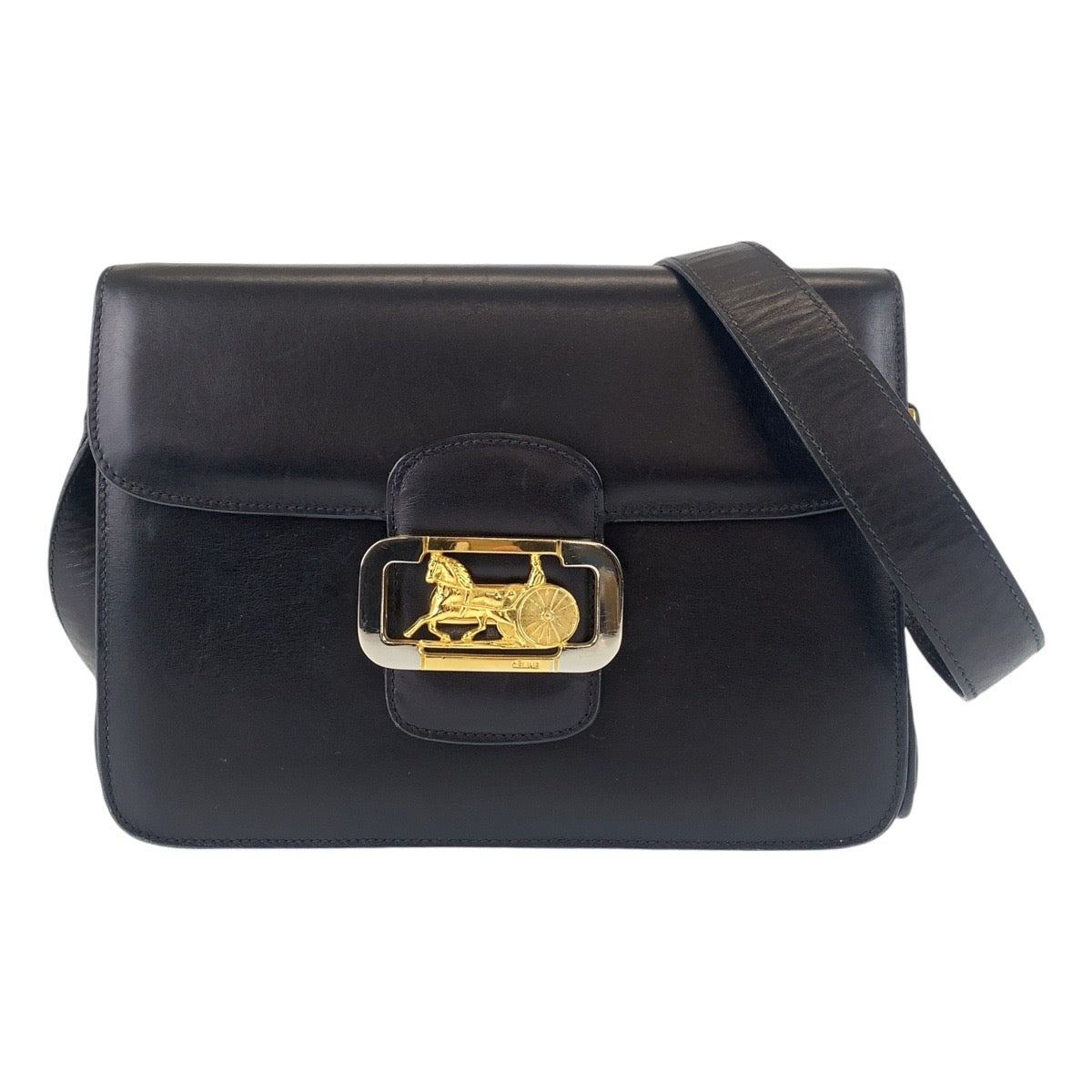 CELINE Shoulder Bag leather Black GoldMetal Crossbody Shoulder Bag Messenger Bag Horse Carriage Metal Women Used Authentic
