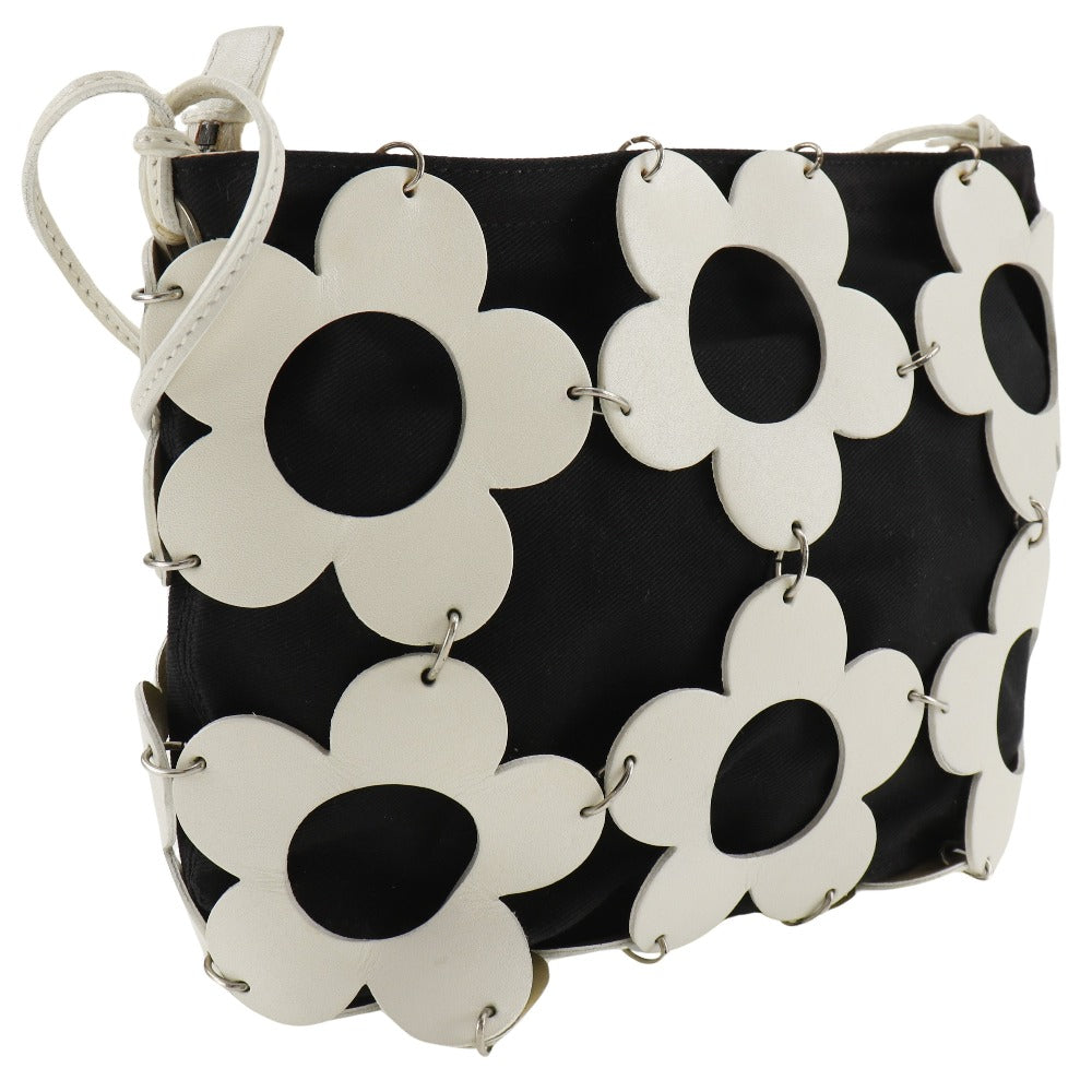 CELINE Shoulder Bag Leather, Canvas Off White/Black flour Women Used Authentic