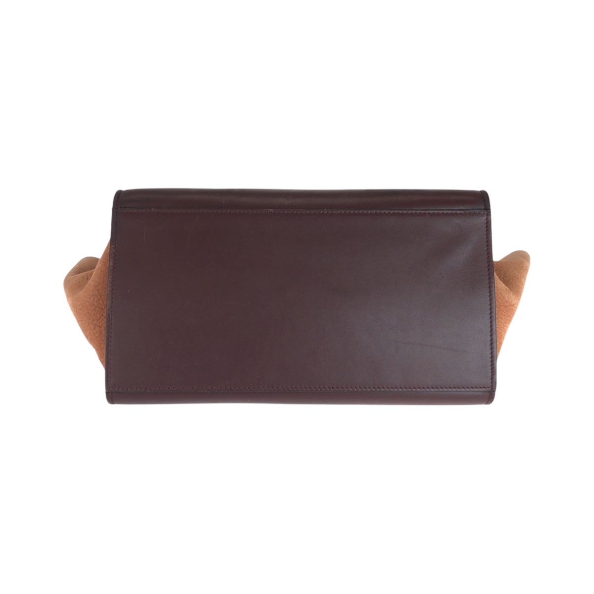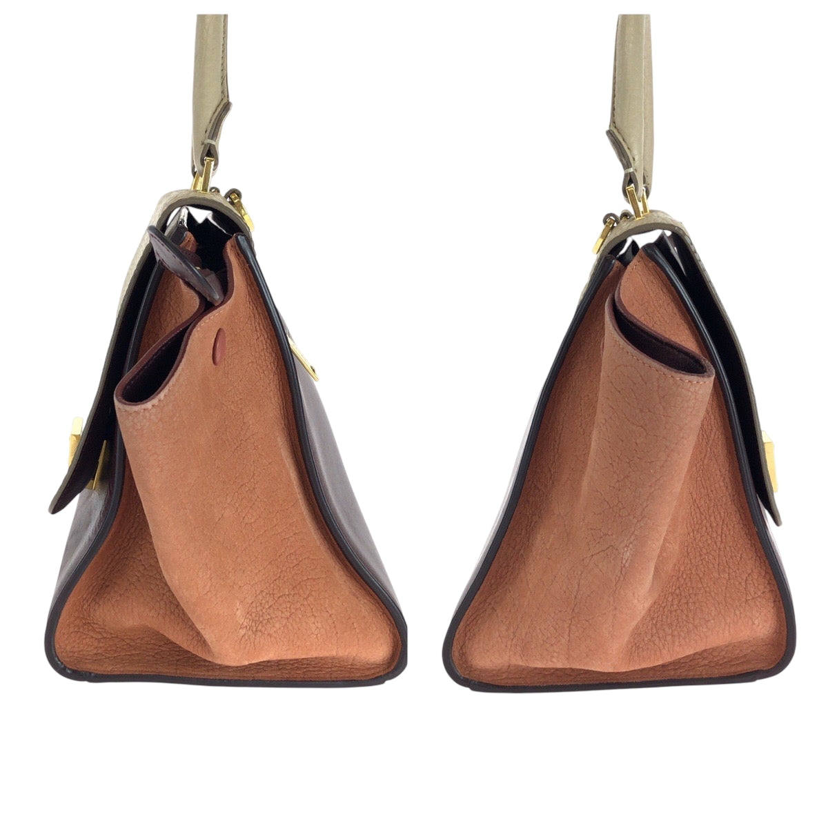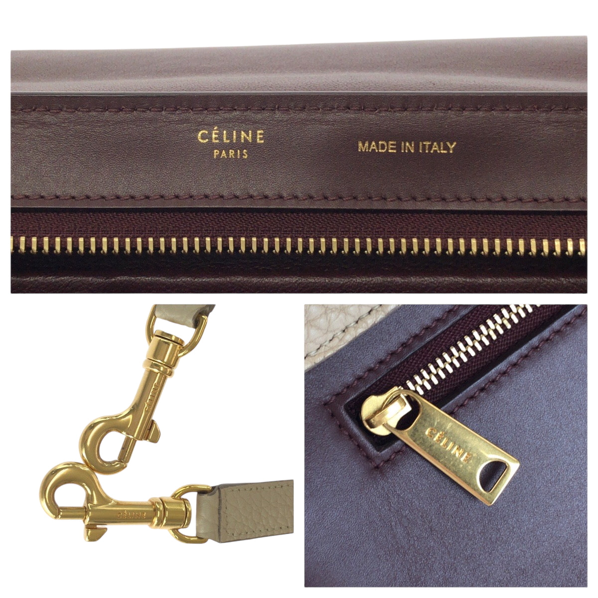 CELINE Shoulder Bag Leather, Suede Bordeaux Ivory Orange Gold Metal Shoulder Bag Handbag 2way Trapeze Women Used Authentic
