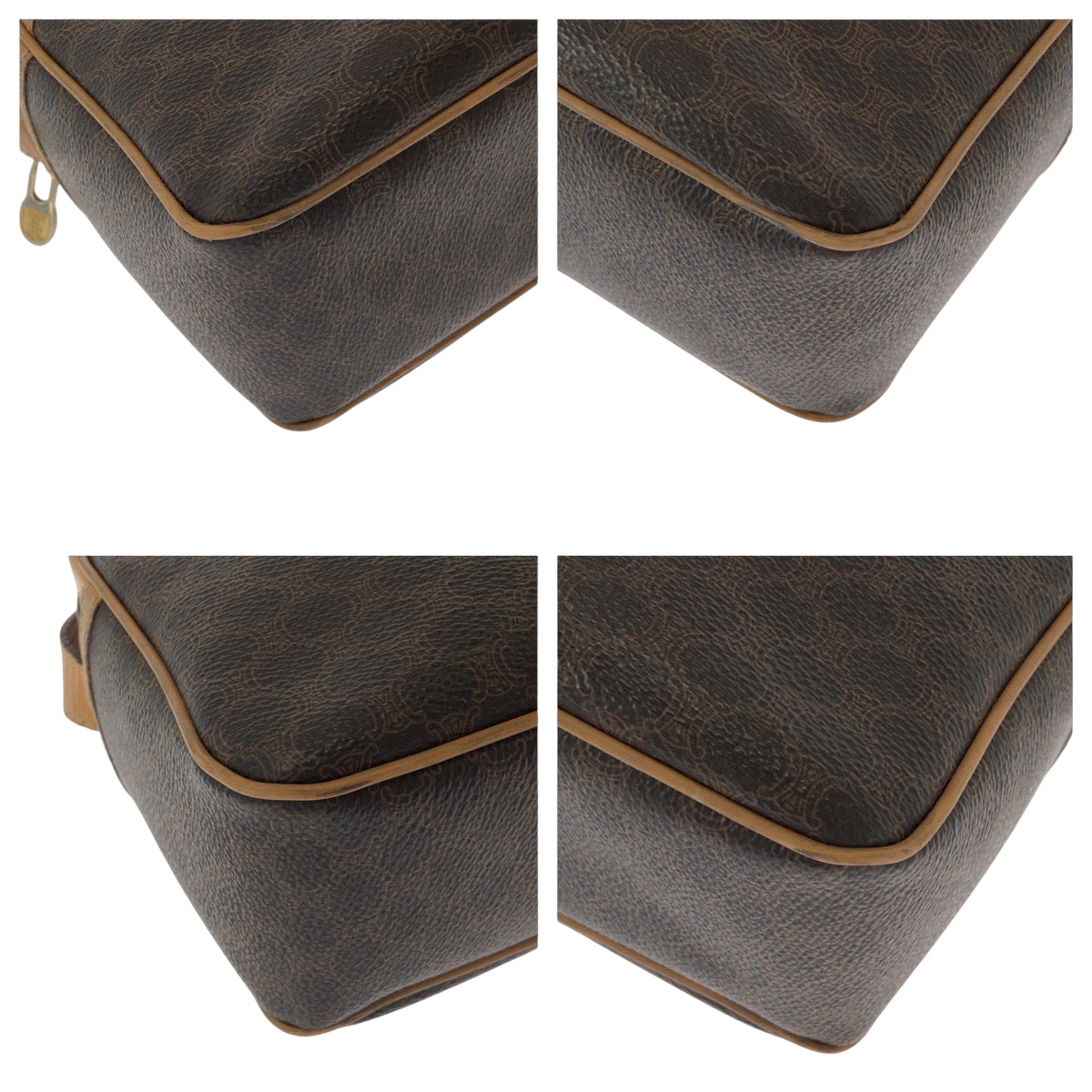 CELINE Shoulder Bag M13 PVC Brown Gold Metal Shoulder Bag pochette Macadam Pattern Women Used Authentic