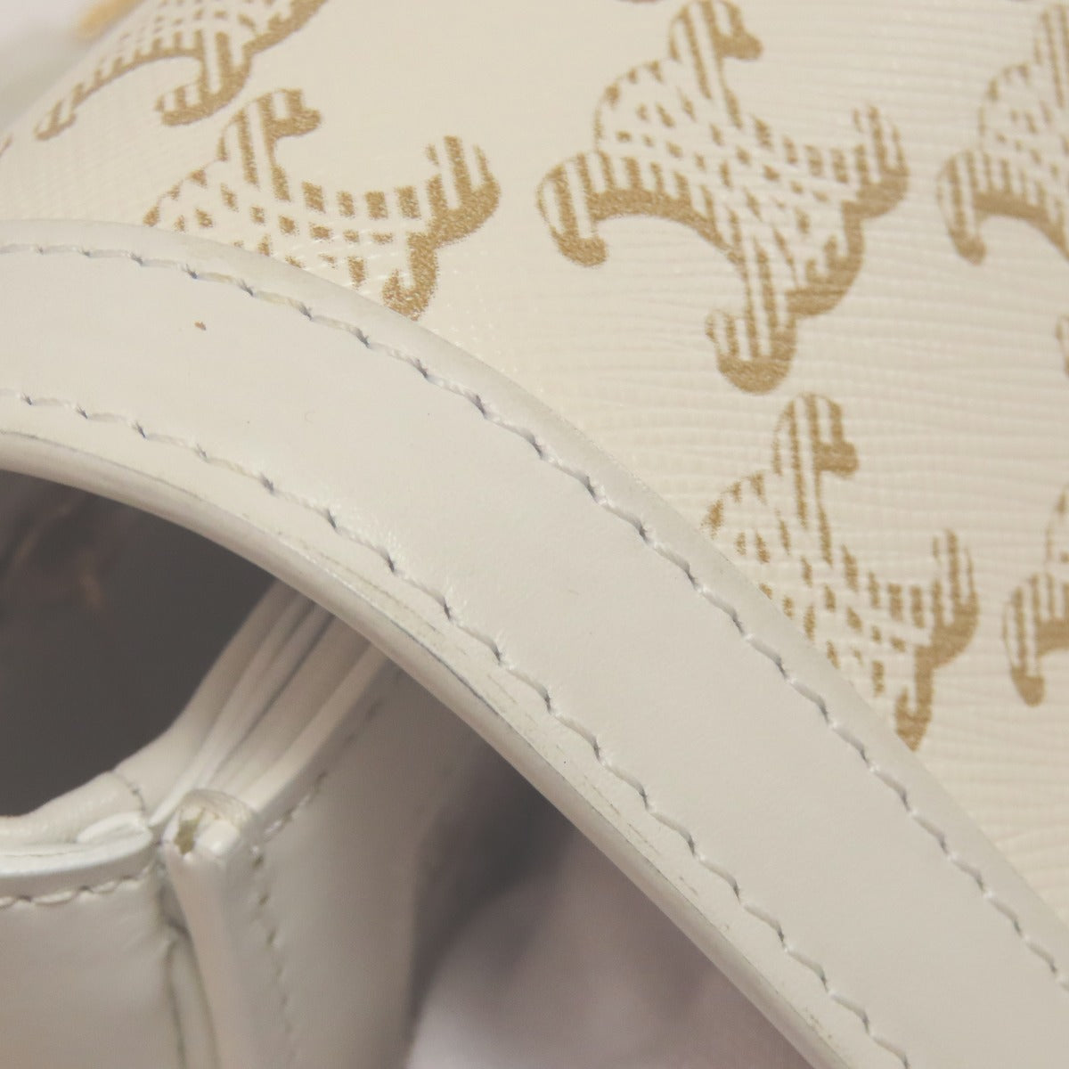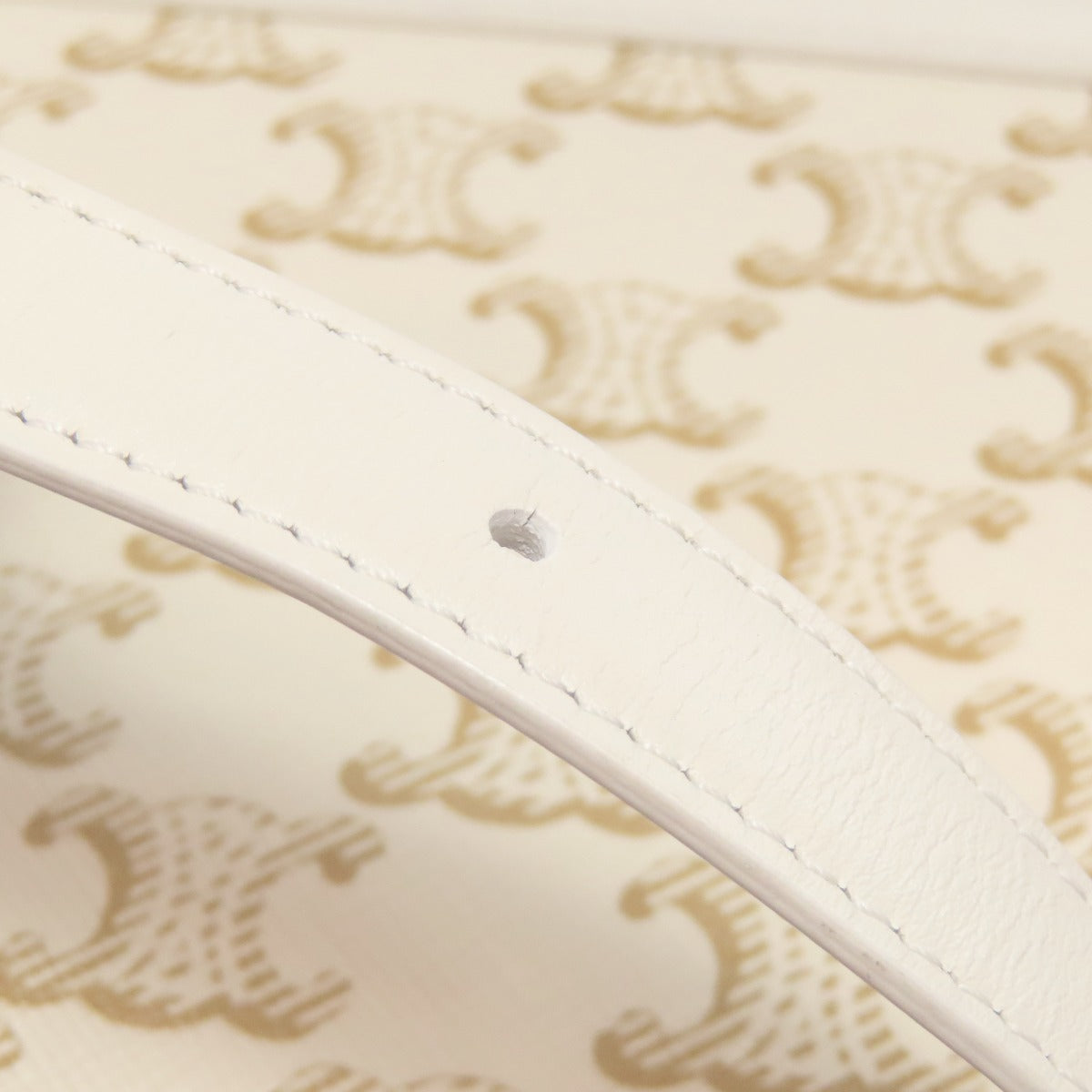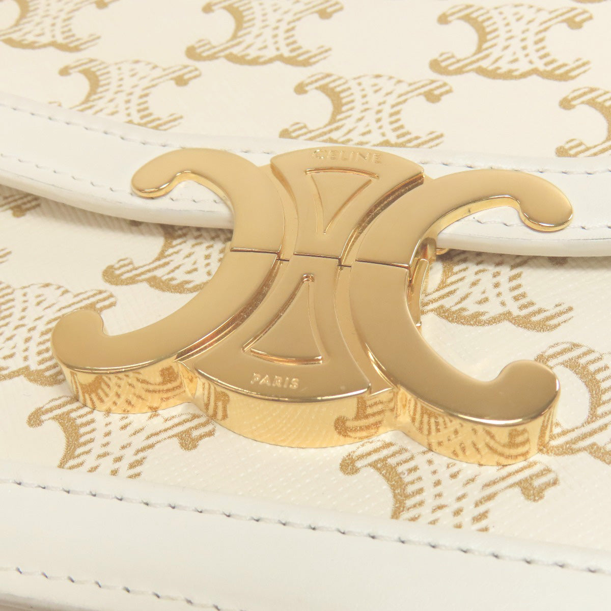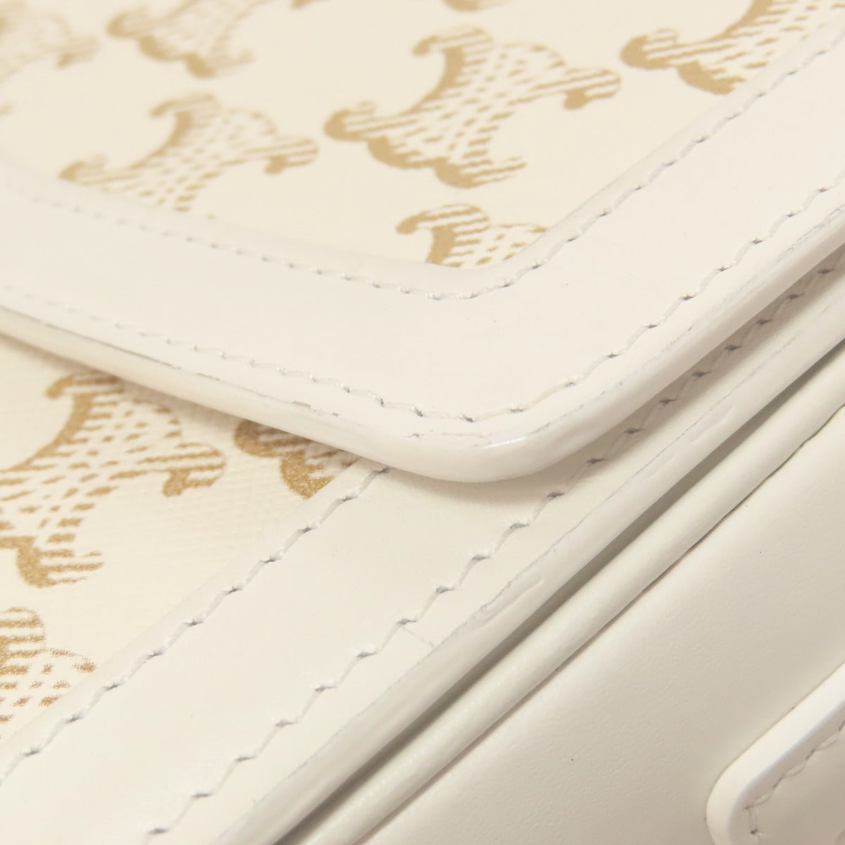 CELINE Shoulder Bag PVC , Calfskin white Teen Triomphe Women Used Authentic