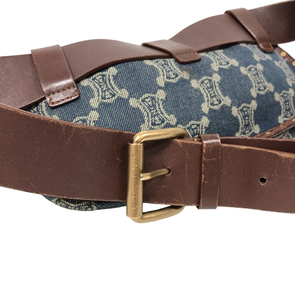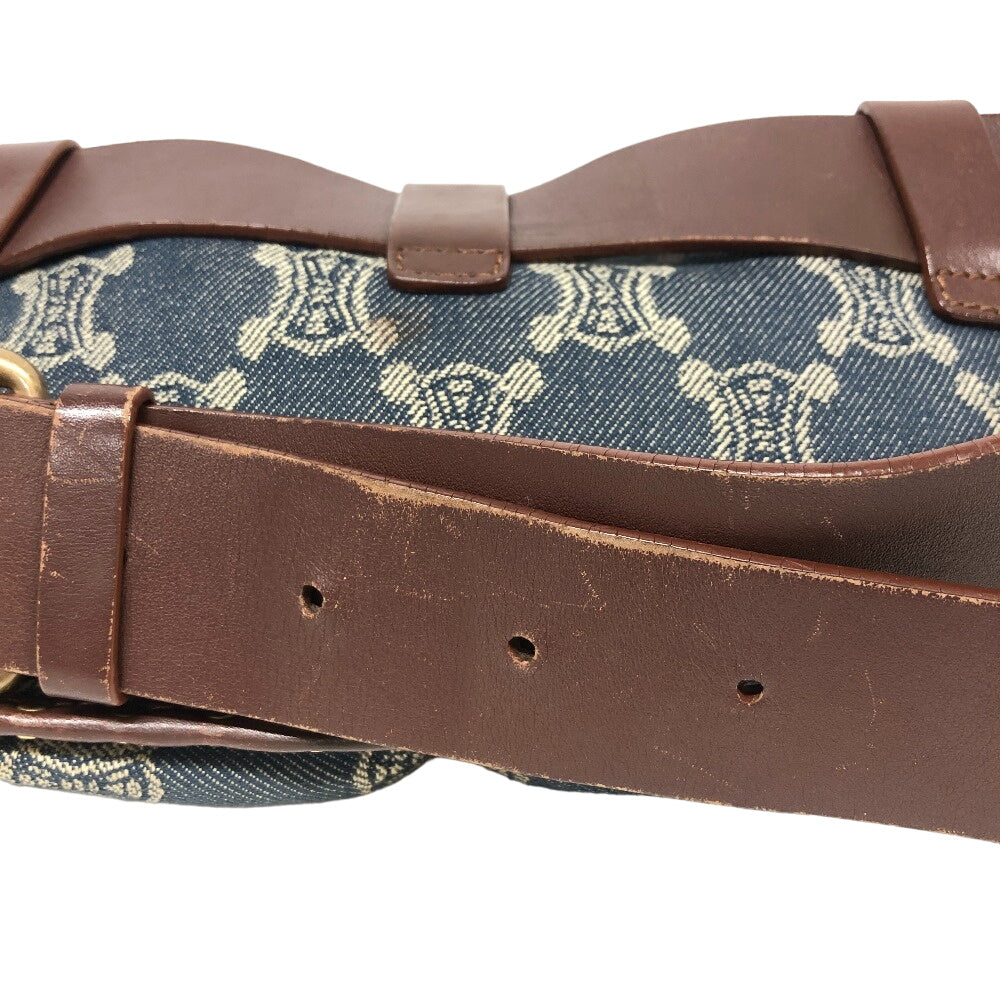 CELINE Sling bag Denim, Leather blue Waist pouch Macadam Triomphe Women Used Authentic
