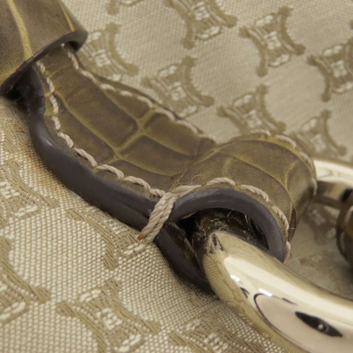 ■Condition Damage: Outer: Loose Threads Inner: Fluffing/Slight Stain Corner: Stain Metal: Scratches Handle: Rubbed