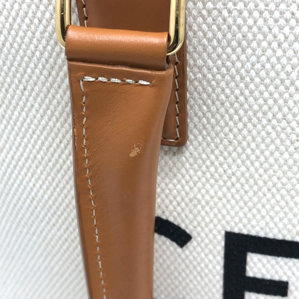 CELINE Tote Bag Canvas / leather white logo Tote Bag Women Used Authentic