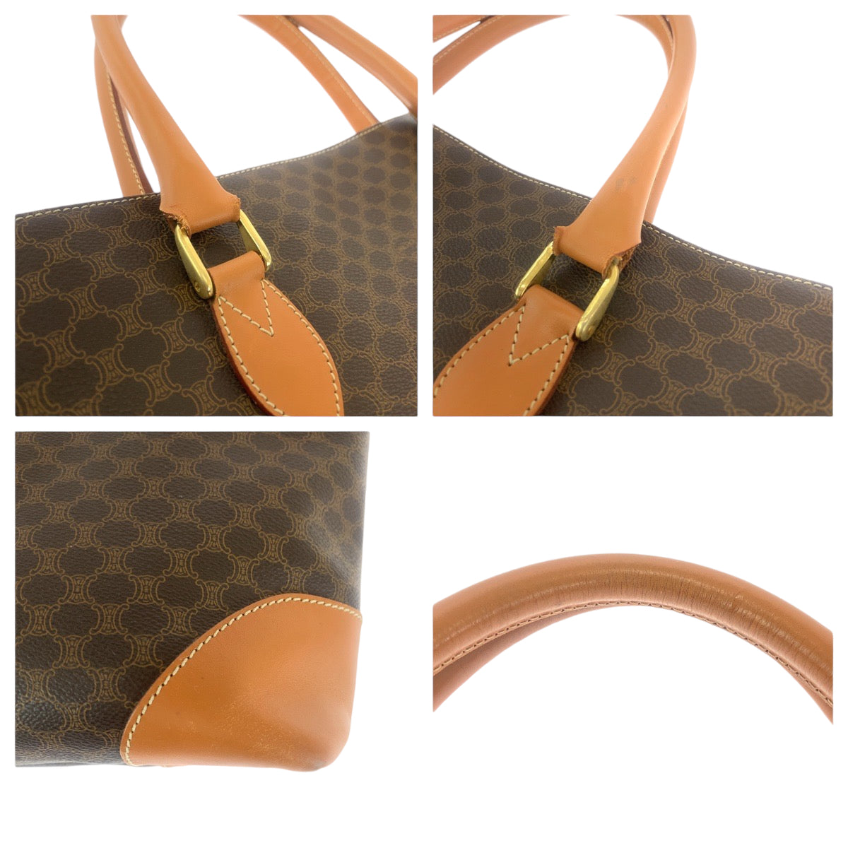 CELINE Tote Bag CE06 2 PVC Brown Gold Metal Tote Bag Shoulder Bag Macadam Pattern Women Used Authentic