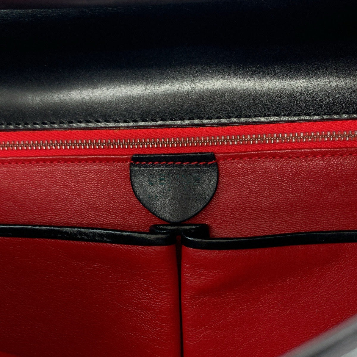 CELINE Tote Bag leather Black Red GoldMetal Tote Bag Handbag Shoulder Bag Thousand patterns Women Used Authentic