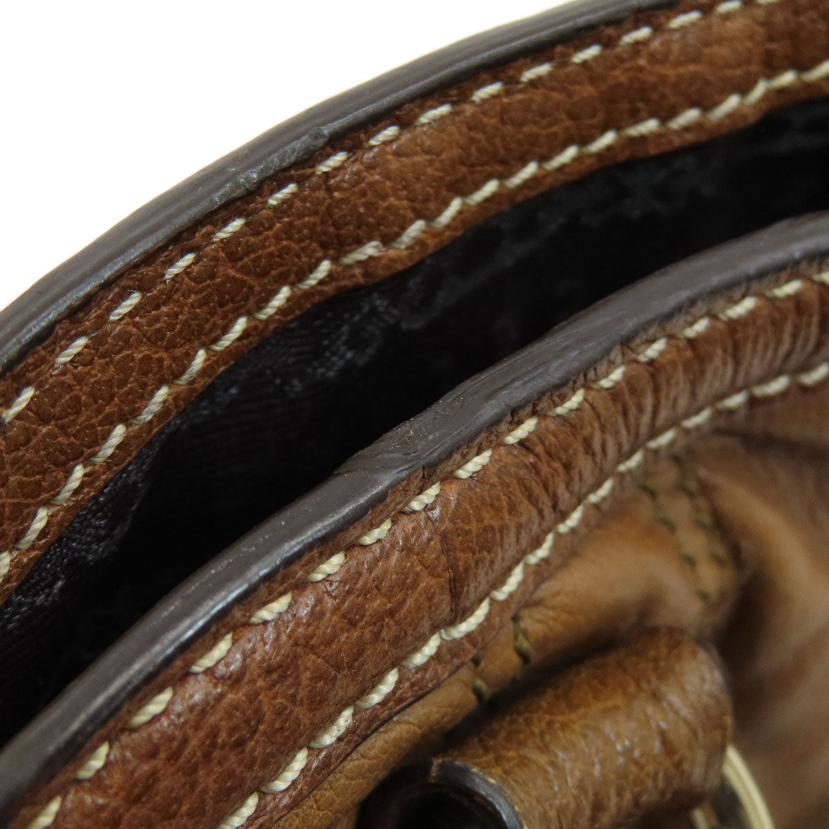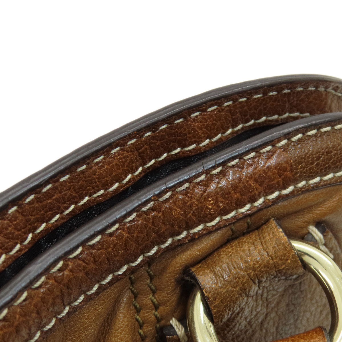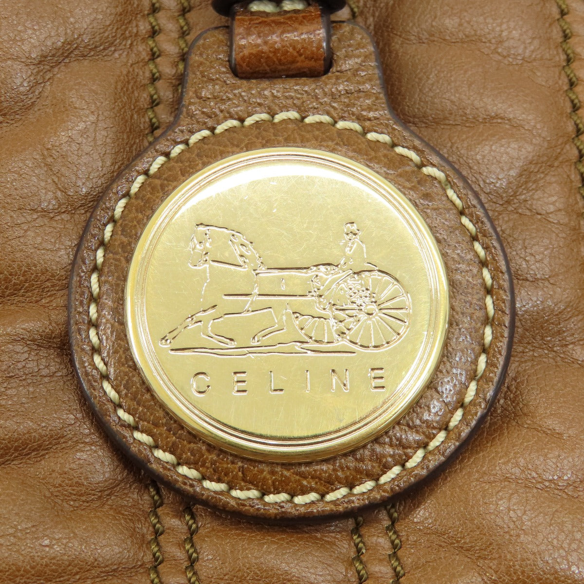 CELINE Tote Bag leather Brown Stripe stitch Women Used Authentic