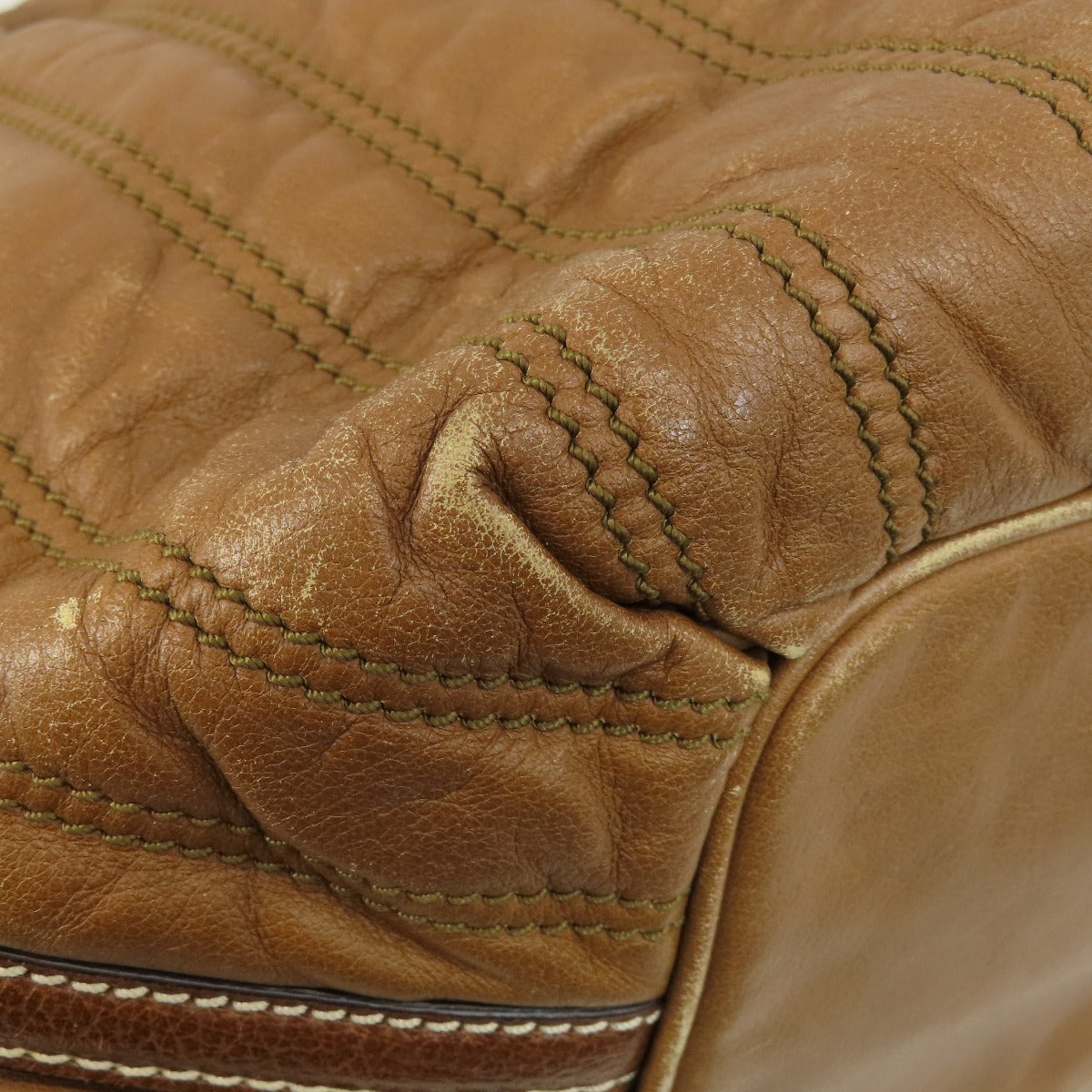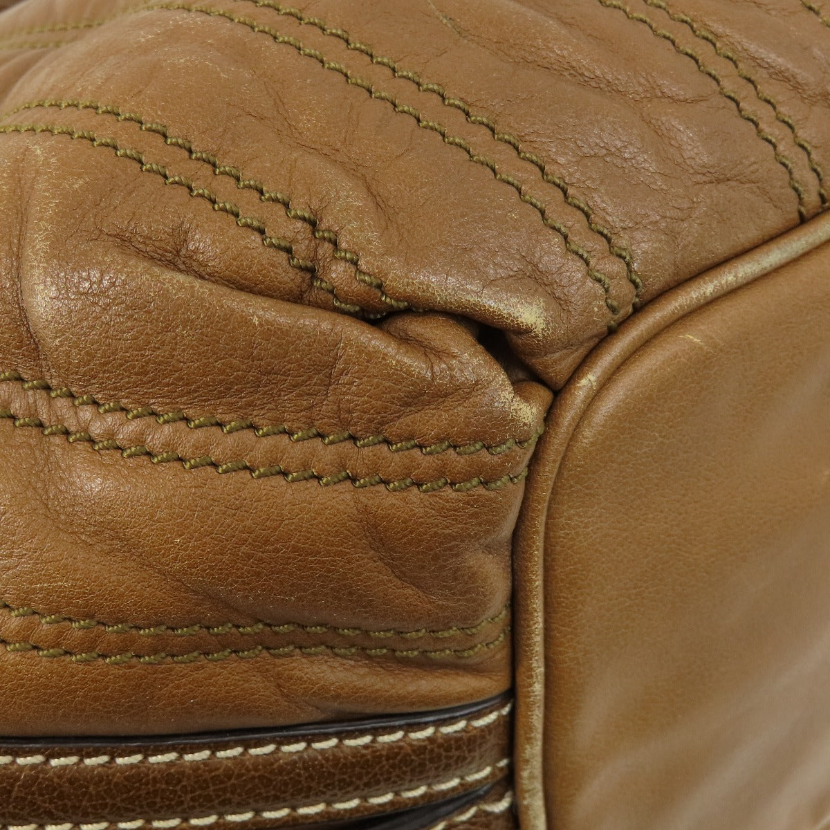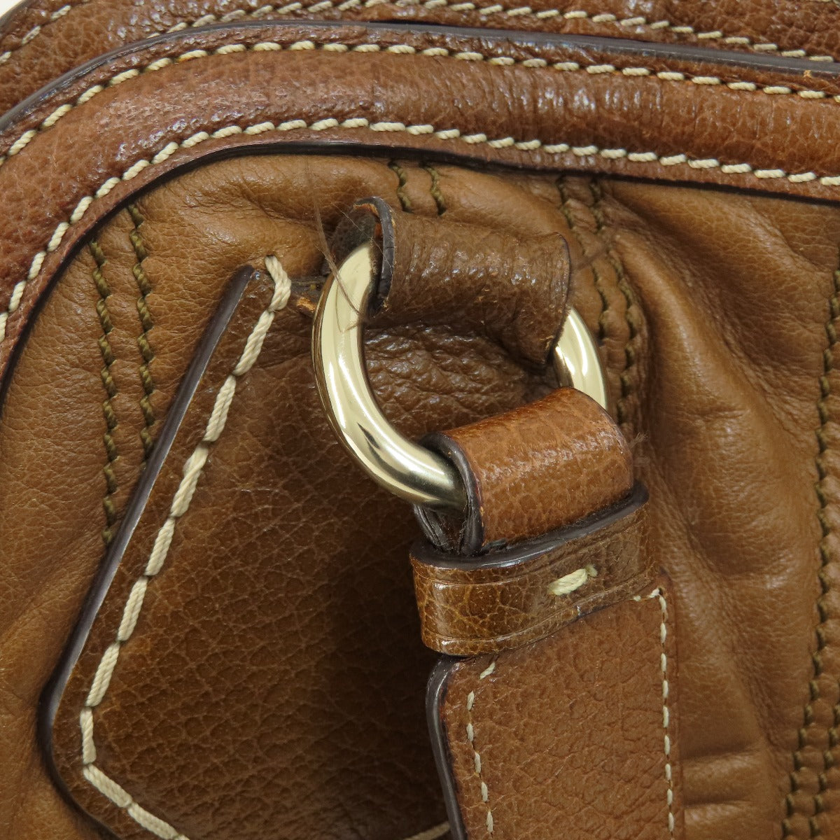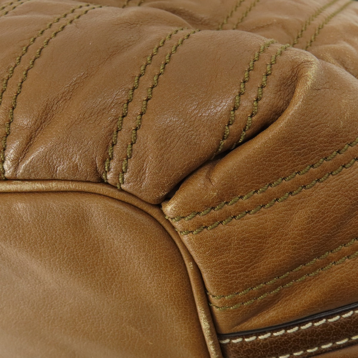 CELINE Tote Bag leather Brown Stripe stitch Women Used Authentic