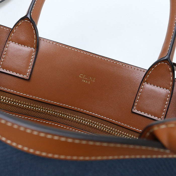 CELINE Tote Bag Vertical Hippo Small 2Way Mini Handbag canvas, leather Navy Women