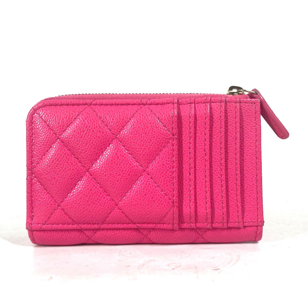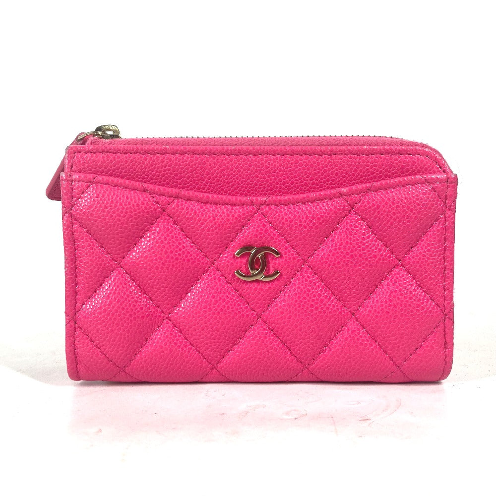 CHANEL Coin case AP3179 Caviar skin pink quilting matelasse CC COCO Mark Fragment Case Women Used Authentic