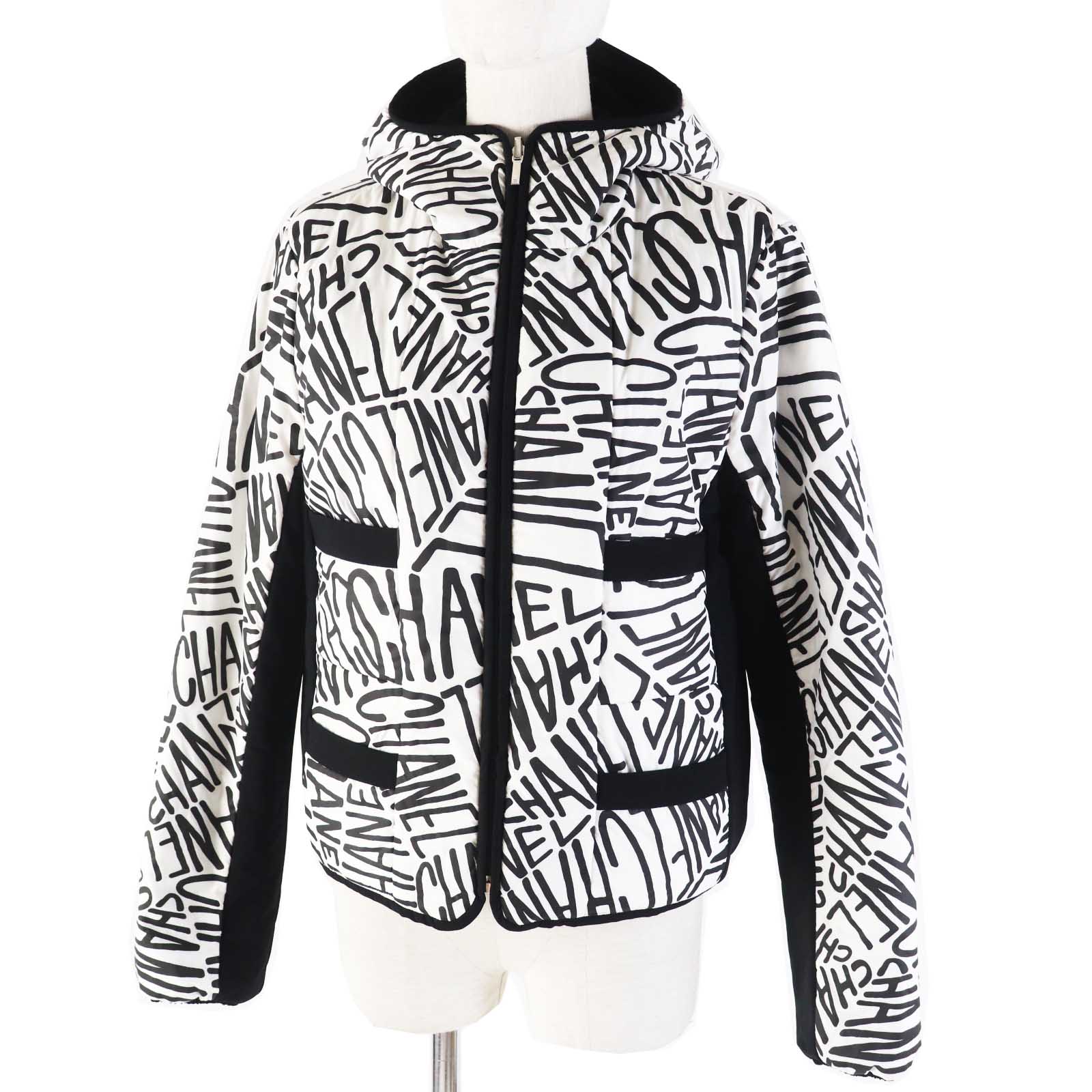 CHANEL Down jacket P70625 Outer: 100% polyester, Filling: 85% down, Filling: 15% polyester, Other: 76% polyamide, 24% polyurethane, Other: 100% polyester Black White/Black Women 36 Used Authentic