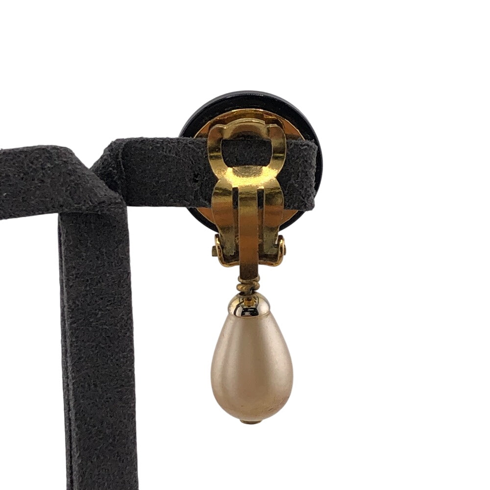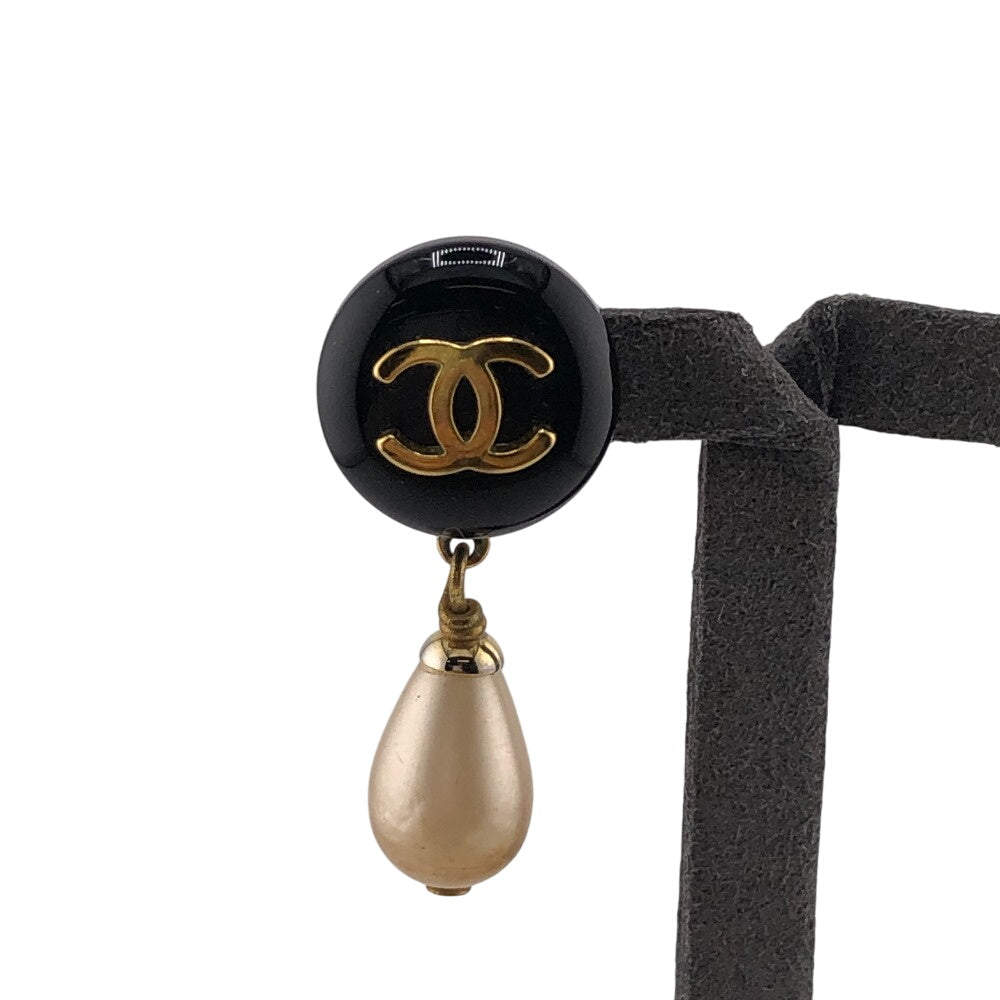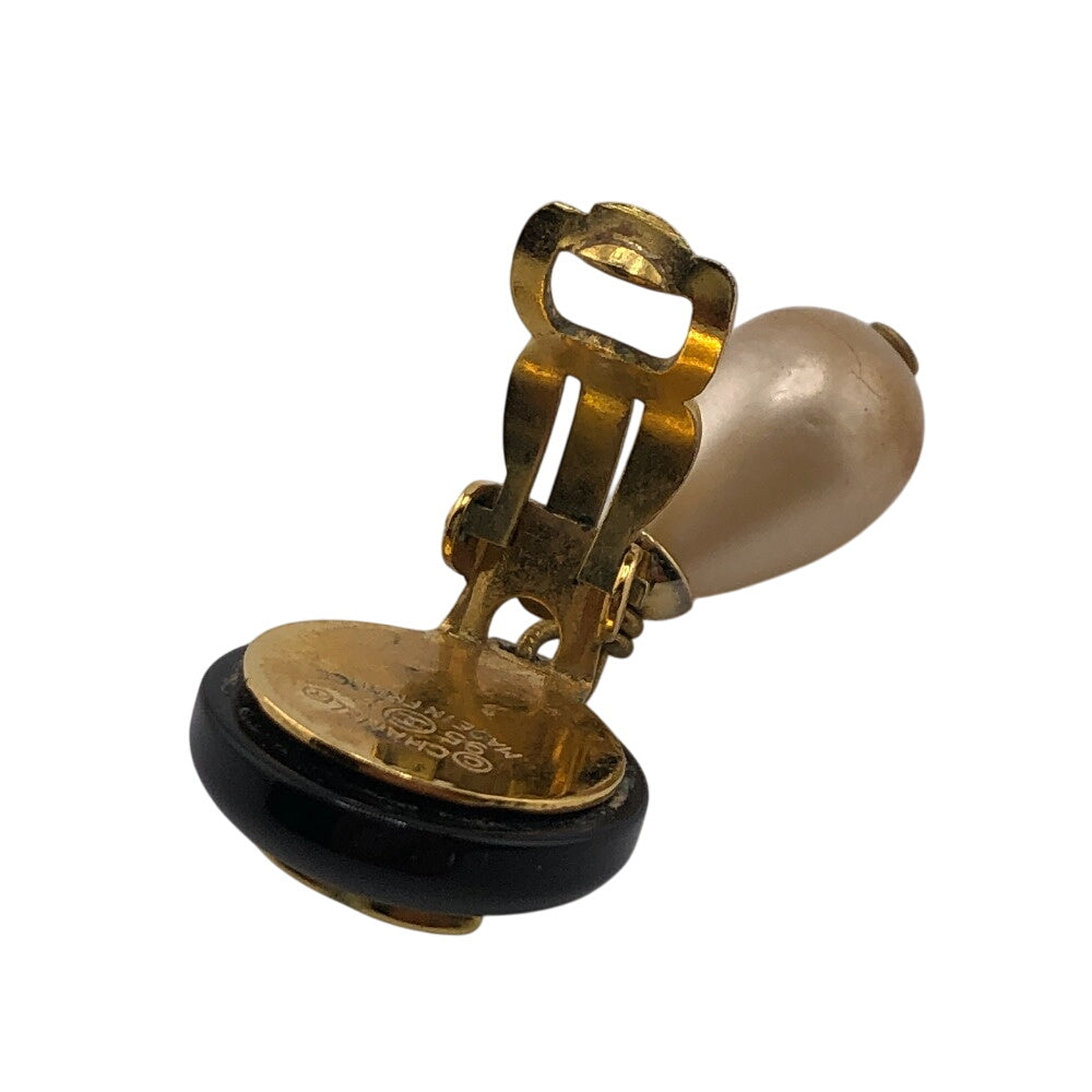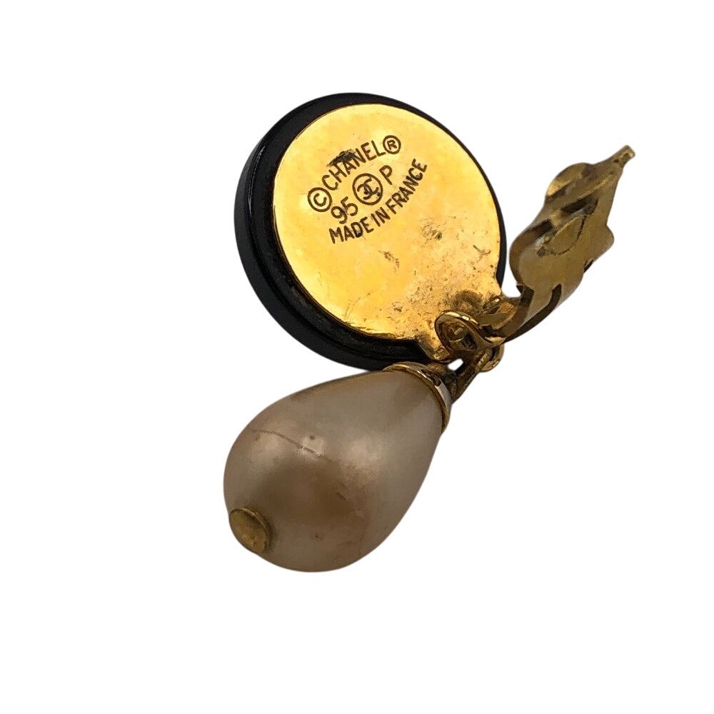 CHANEL Earring 95P Gold Plated, Faux Pearl black COCO Mark Women Used Authentic