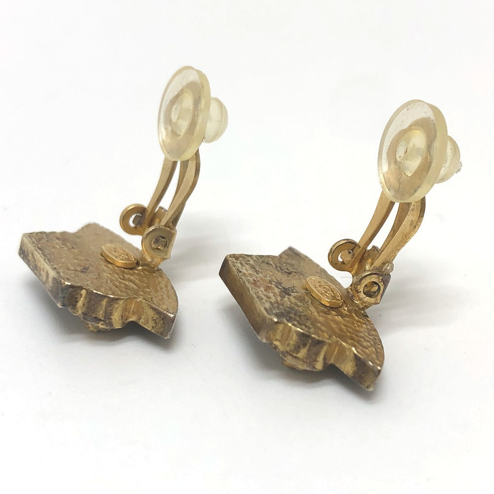 CHANEL Earring Gold Plated black Hat motif Women Used Authentic