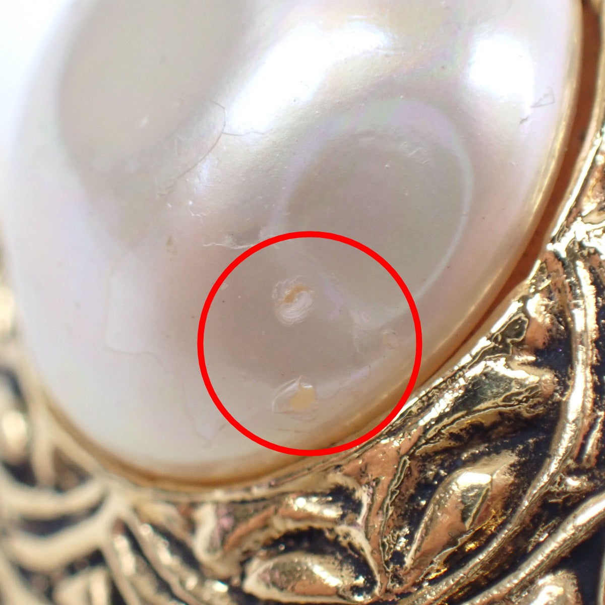 Fake pearls have peeling and rubbing (see images 5-7)
