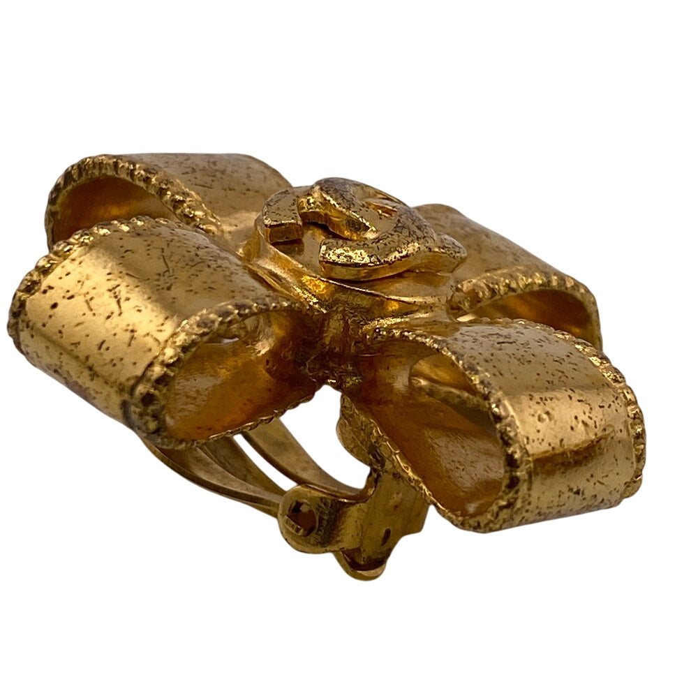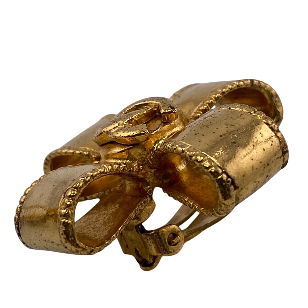 CHANEL Earring Gold Plated gold 97A COCO Mark Ribbon Women Used Authentic