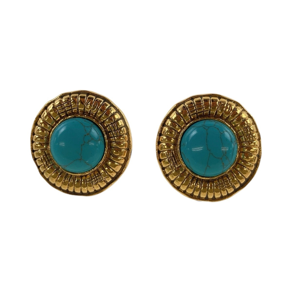 CHANEL Earring Metal, Natural Stone Blue Turquoise Women Used Authentic