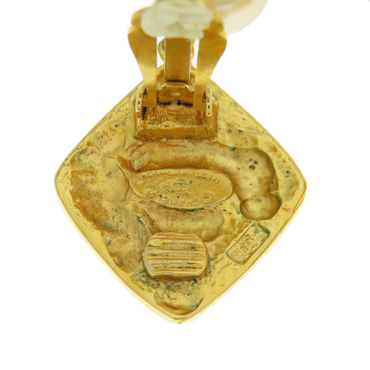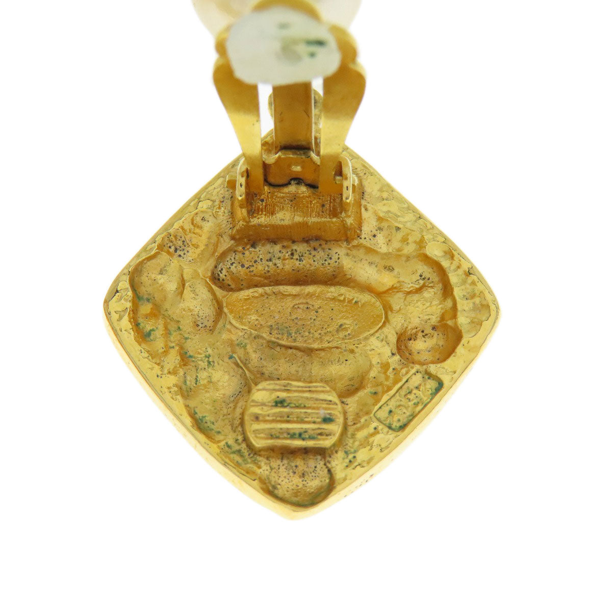 CHANEL Earring metallic gold COCO Mark Pearl Women Used Authentic