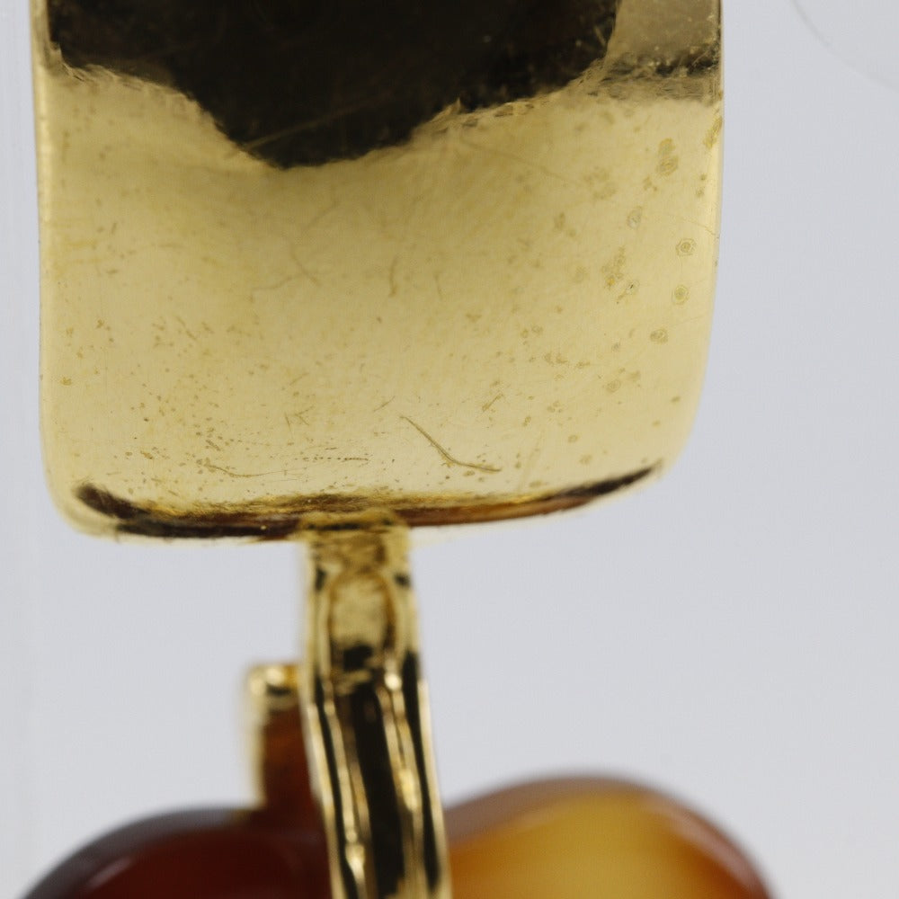 CHANEL Earring Plated Gold , Plastic Brown vintage Clover COCO Mark Heart Women Used Authentic