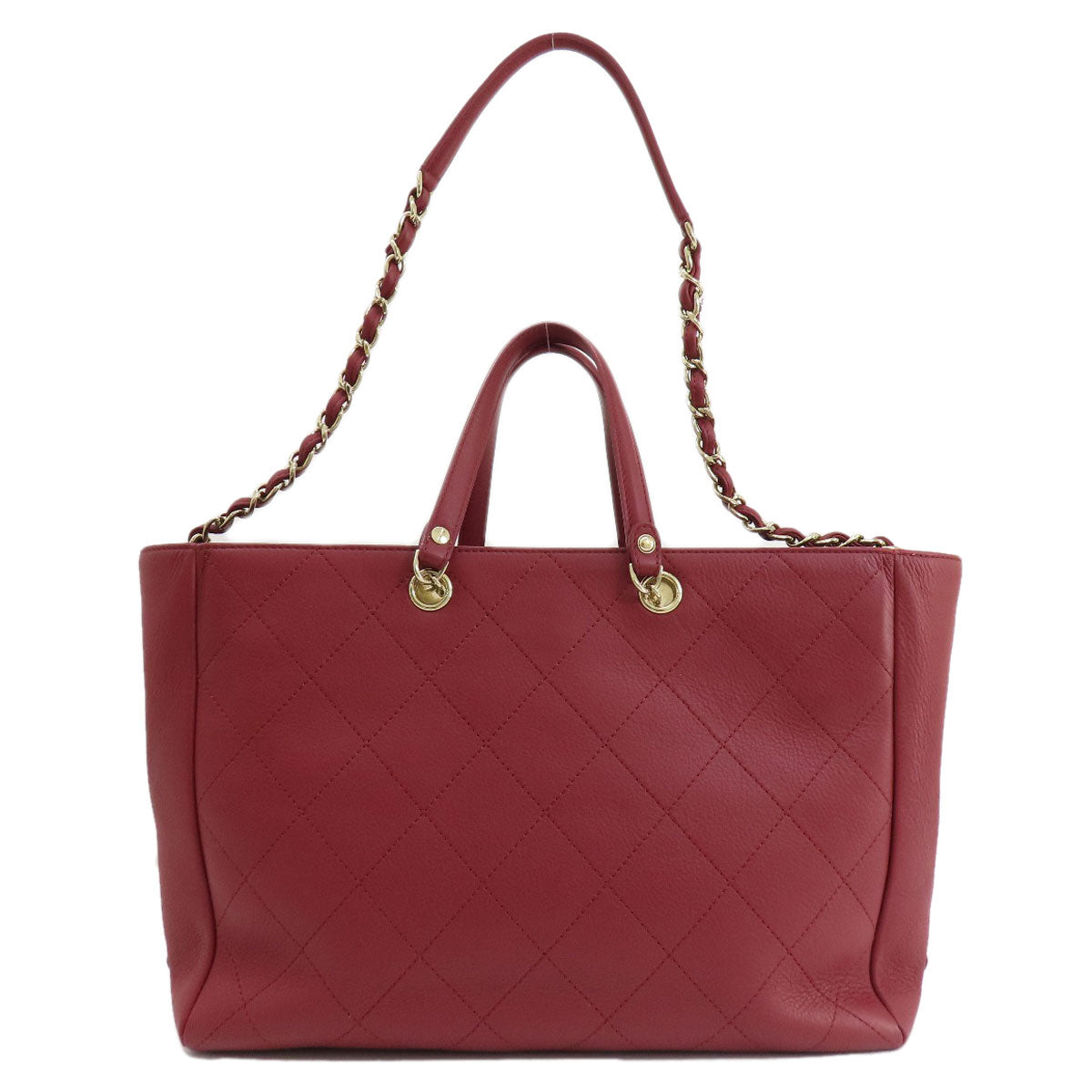 CHANEL Handbag Calfskin Red COCO Mark Gold Metal 2WAY