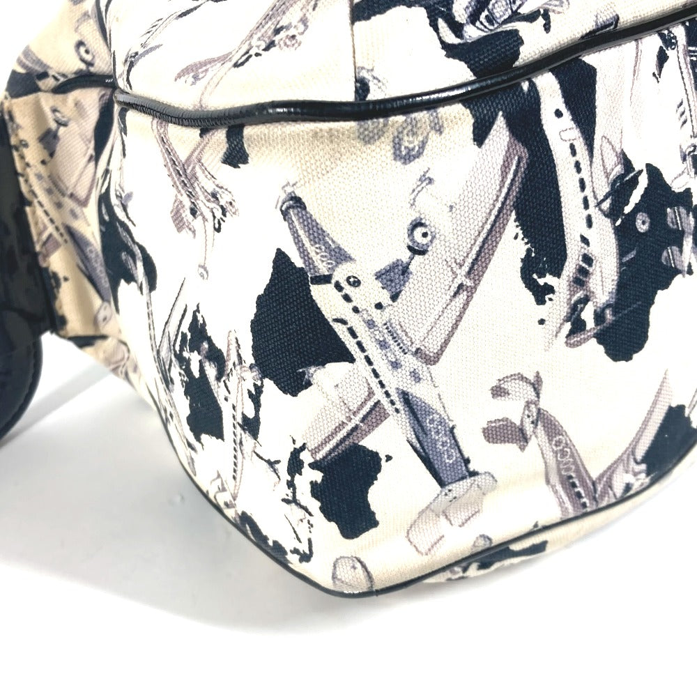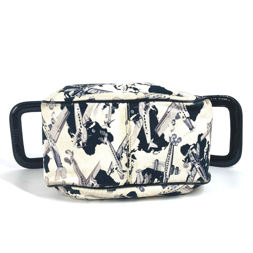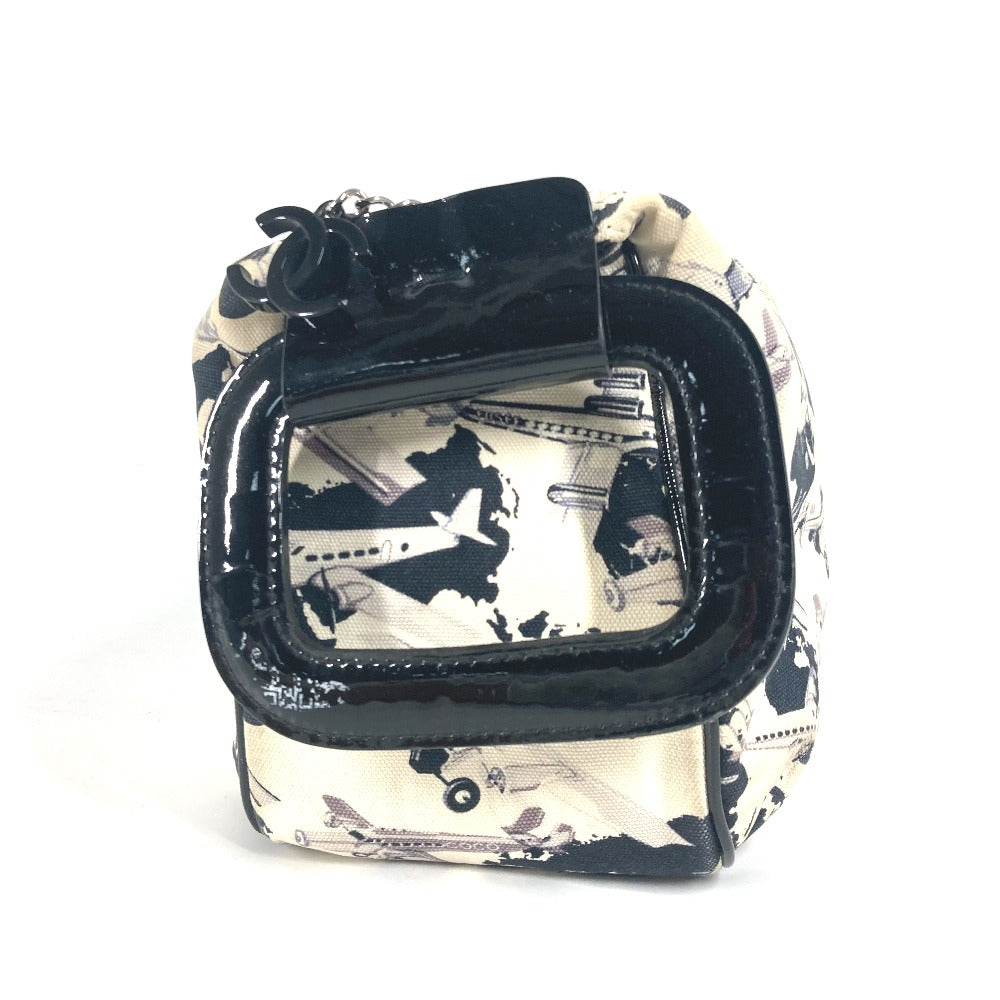 CHANEL Handbag Canvas, enamel black logo airplane Airline Women Used Authentic