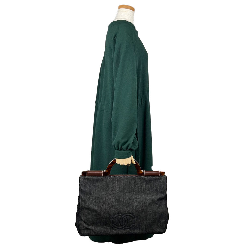 CHANEL Handbag Denim, Leather black Women Used Authentic