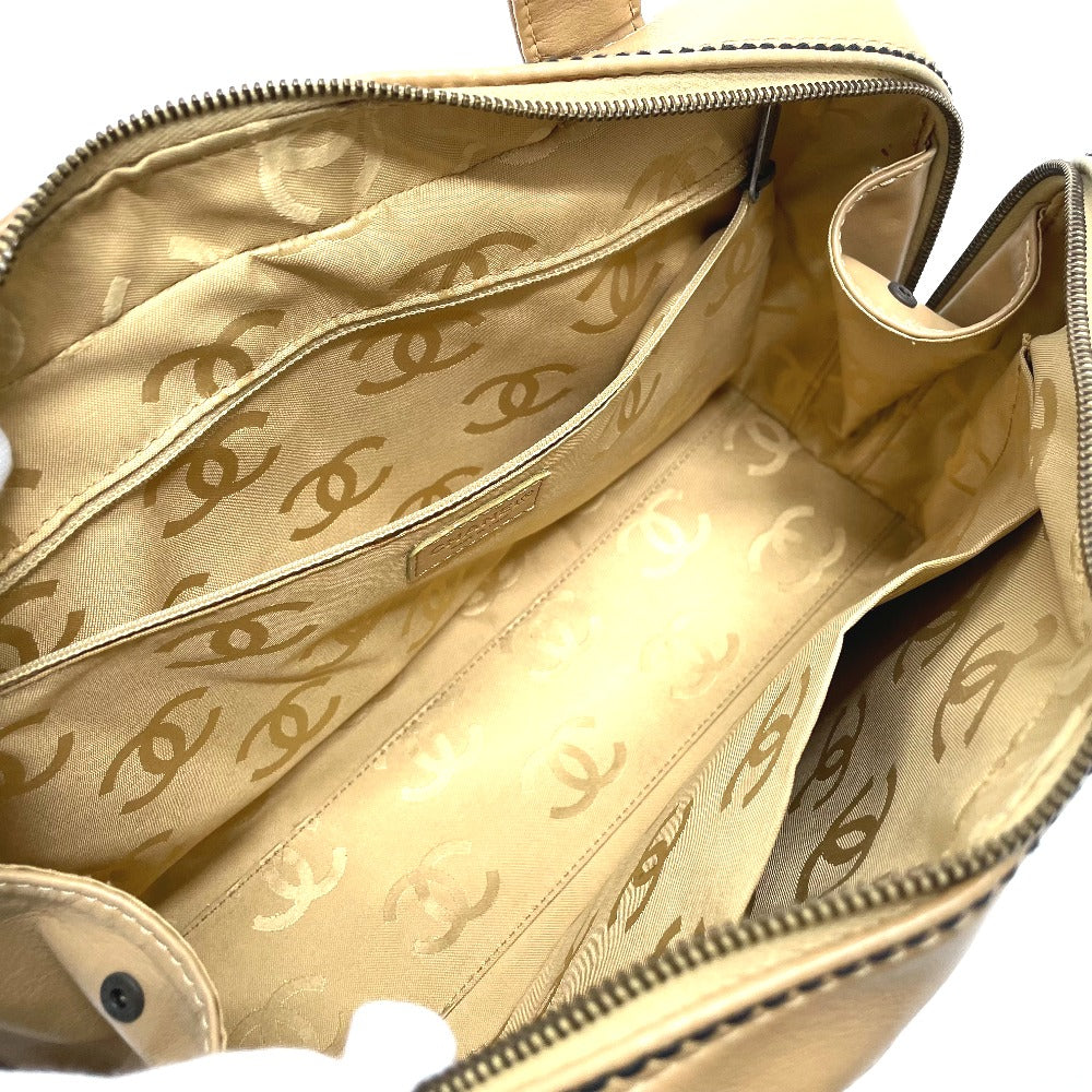 CHANEL Handbag lambskin beige CC COCO Mark Wild stitch Women Used Authentic